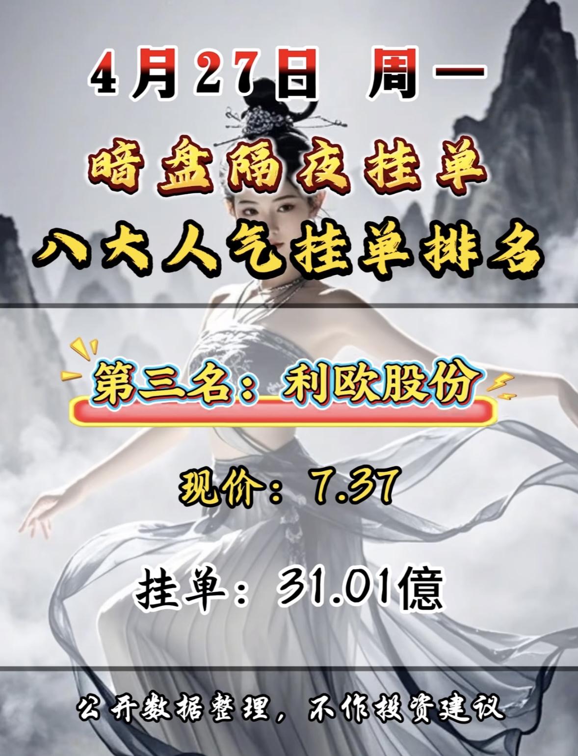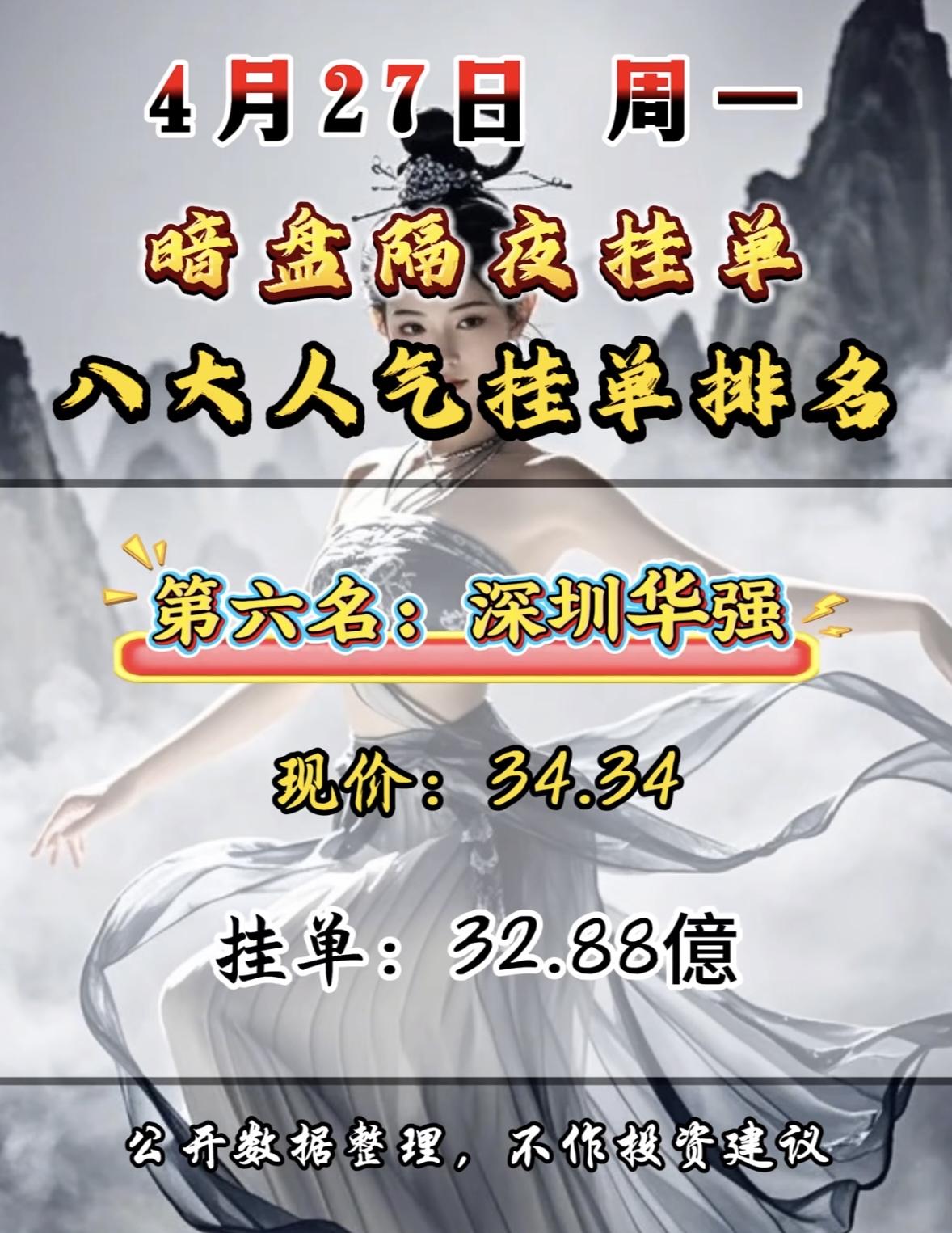 4月27日周一暗盘隔夜挂单排行榜揭晓