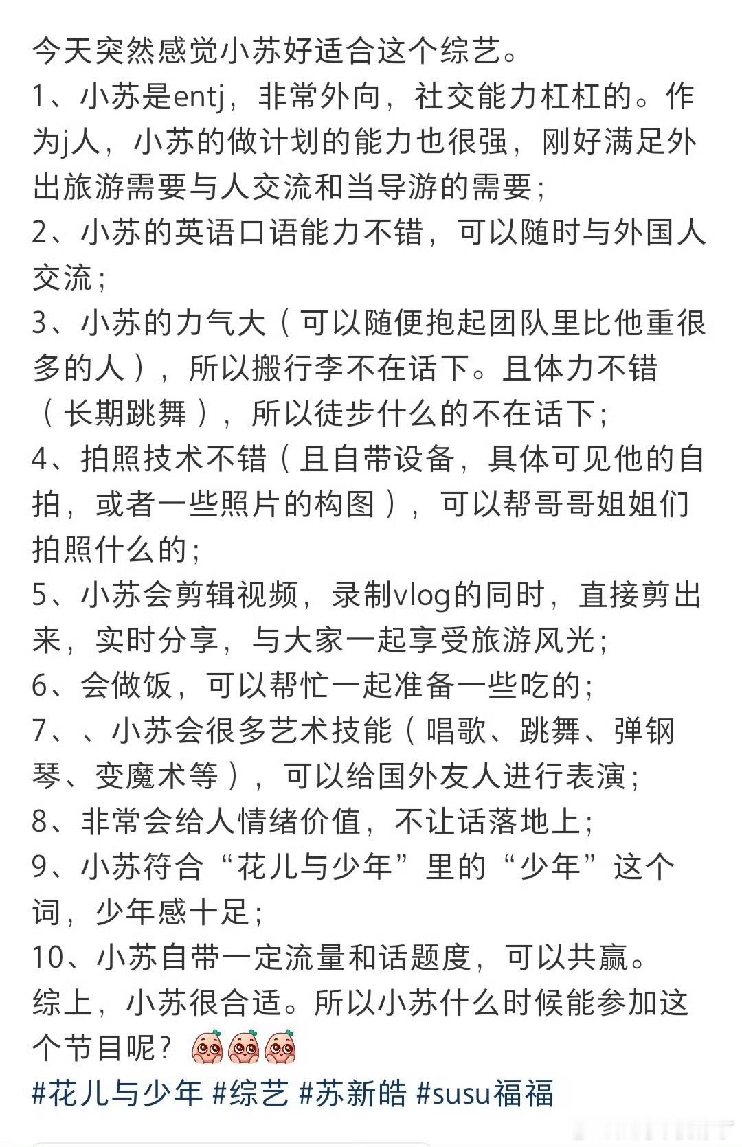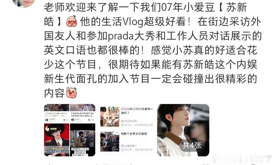 花少总导演回复苏新皓粉丝我大接特接!苏新皓真的太适合花少了,性格三观样样在线,完美适配旅行综艺!