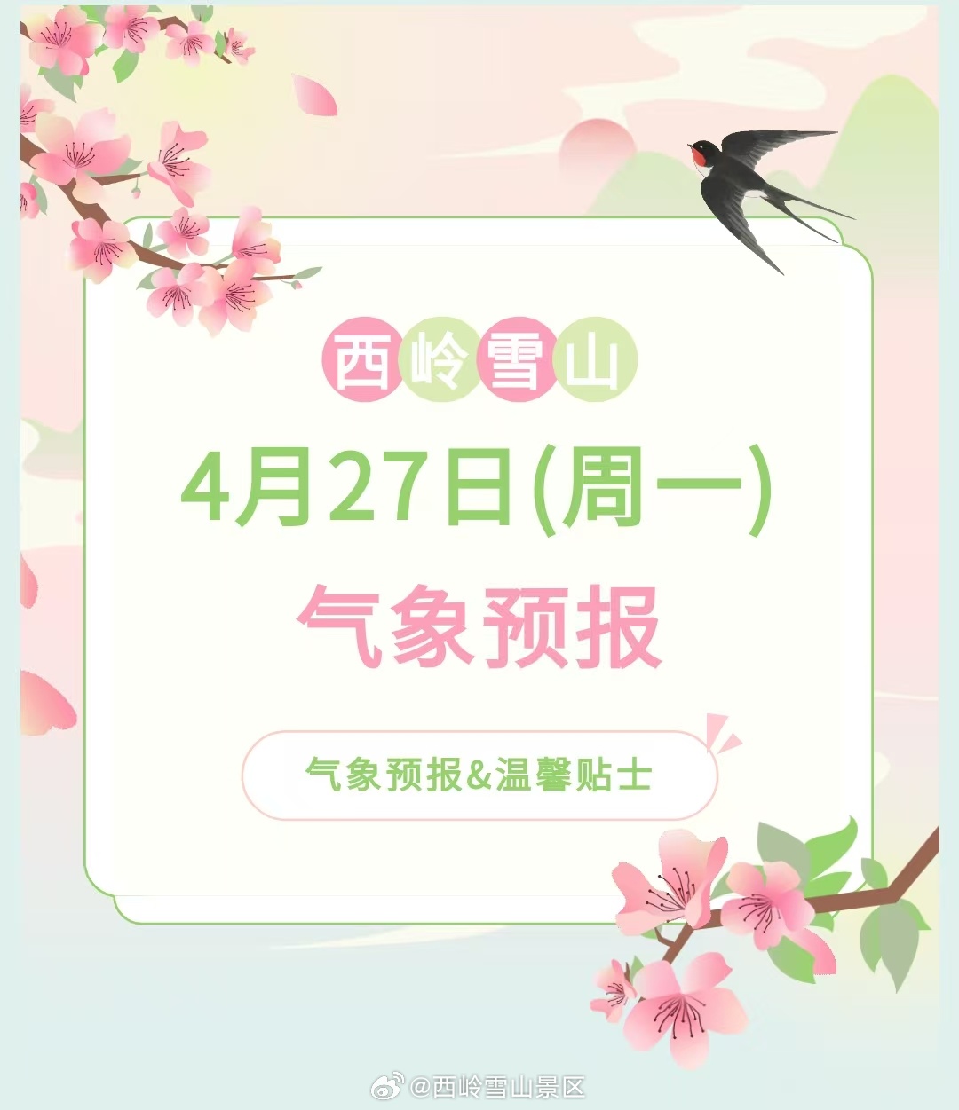 西岭雪山4月27日(周一)气象预报#西岭雪山#