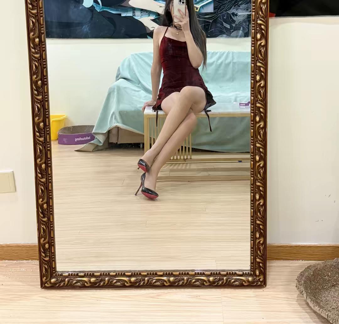这姑娘穿着蕾丝吊带裙,温柔甜美。