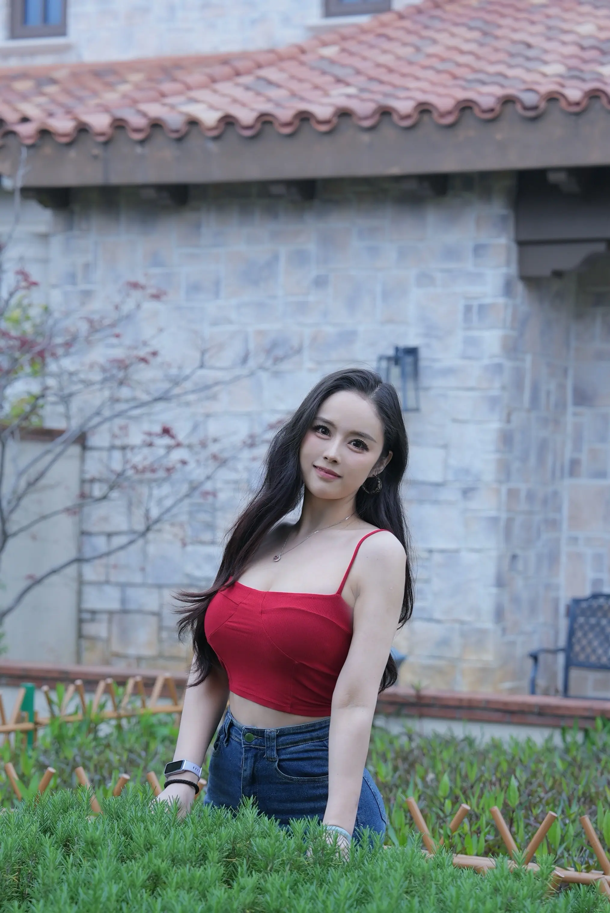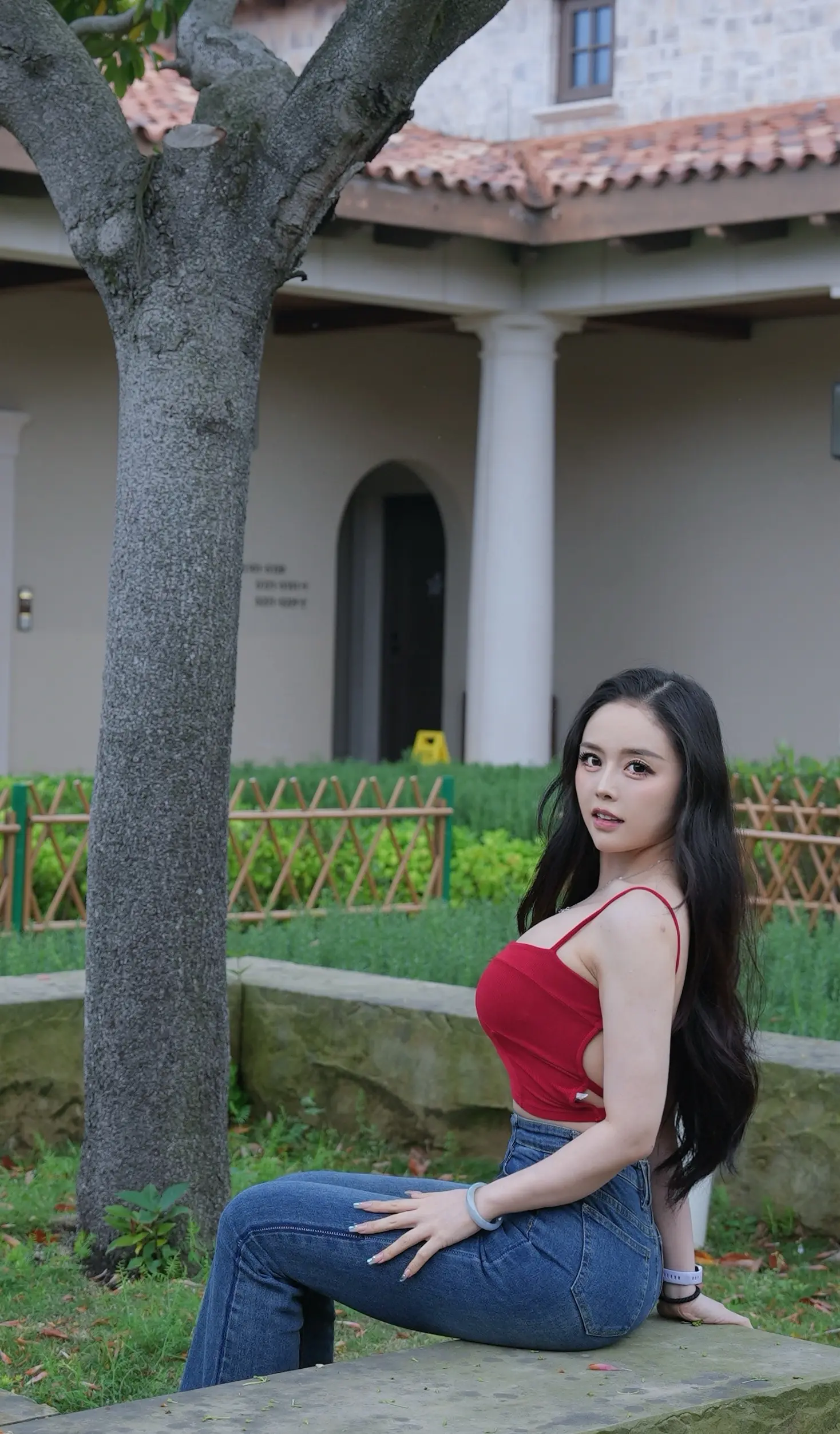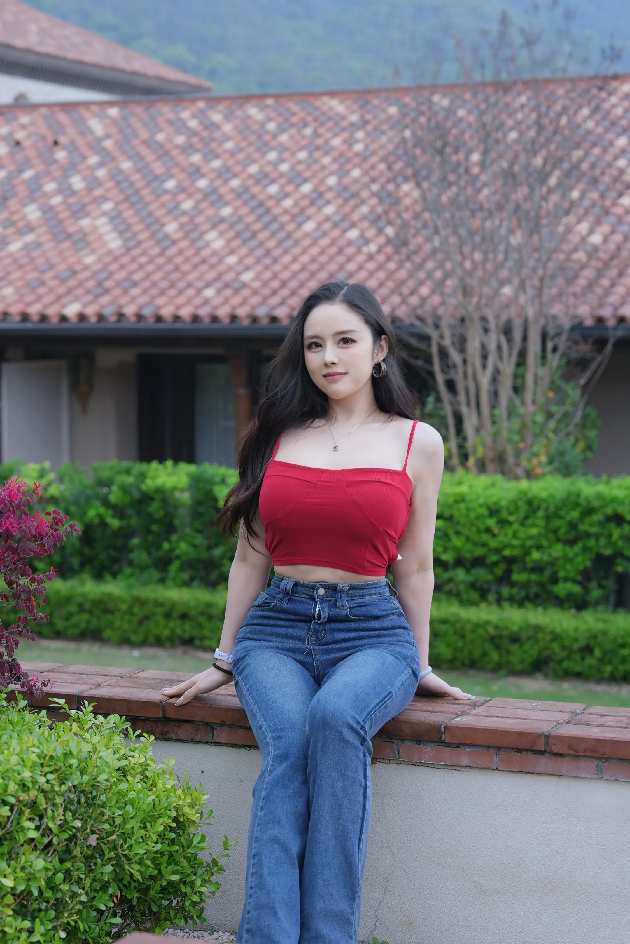 红色吊带穿搭 辣妹专属bgm 辣妹红背心 公园拍照姿势 爱我就对辣