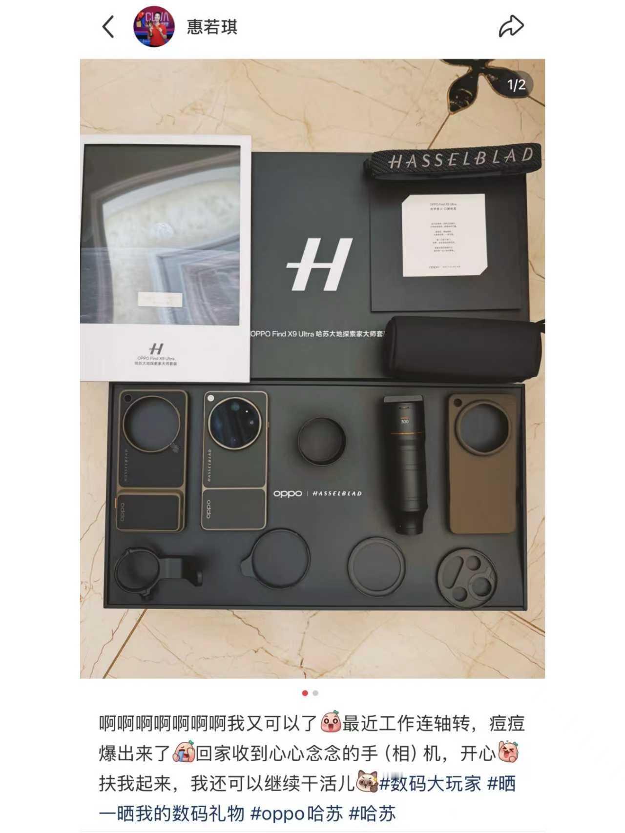 刚刚刷到她晒了新入的OPPO Find X9 Ultra哈苏大师套装