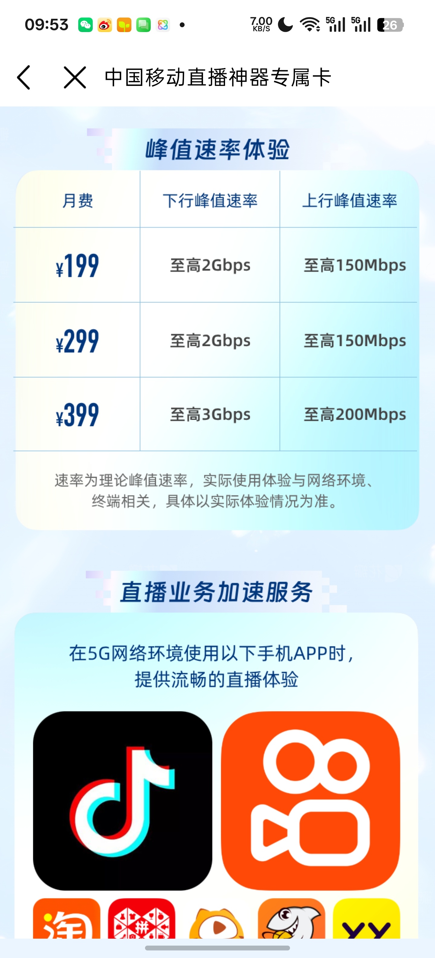 这玩意终于要开售了,对于经常在发布会直播的我来说这个玩意超级好用,但是必须得搭配移动专属卡使用,三个资费,首销期下单这个直播卡享受7折优惠~