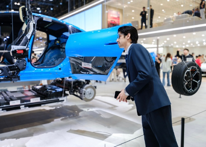 老外踮脚看中国智造北京车展这一幕真的看破防了!以前我们只能踮着脚、凑上前看别人的先进技术,满眼都是想学习、想追上的渴望。现在真的攻守易型了,好多外国朋友围着小米 SU7 仔细打量,蹲下来研究、凑近看细节,看得特别认真。从追赶到领跑,这个拐点,真的发生在各行各业。当年汽车业我们要仰望别人,到现在被世界认真研究,小米 SU7 凭实力成为车展焦点,被全球业内人士认真研究,这就是中国智造最真实的变化。没有夸张,没有煽情,就是实实在在的进步。这一踮脚之间,变的是位置,不变的是我们一直往前冲的劲儿,中国智造真的越来越有底气!
