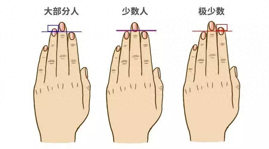 手指长度这个指标,近年来被研究者关注得越来越多。食指与无名指的比值,在医学上叫做第二第四指比,这个数值在胎儿期就受到雄激素和雌激素水平的调控,成年后基本固定不变。
