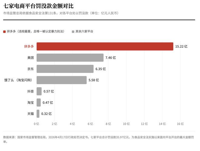这次处罚之后被讨论最多的是,七家平台全部涉案但只有拼多多被官方通报存在"暴力、软对抗等手段阻碍监管执法"。这道定性让拼多多在监管部门的档案里,不再是普通的违规平台,而是对执法机构动用暴力的那家。这种标签的边界效应,远不止于一张罚单。后续监管资源的倾斜、审查频率的提升、新业务审批时的预期,都会受到影响。
