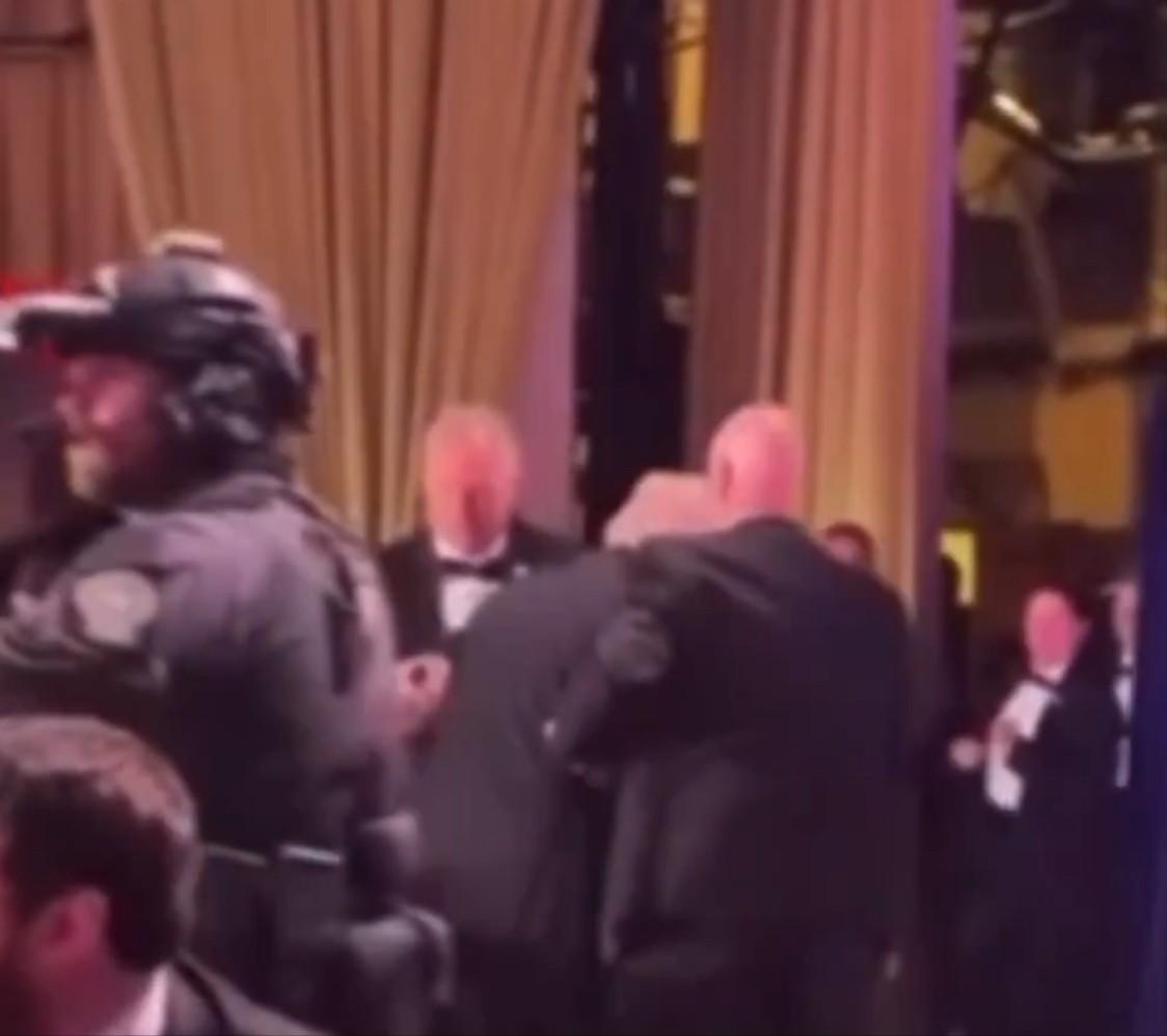 反观特朗普,他坐在主宾席中央,周围全是桌椅和宾客,安保人员得先清理出一条安全路线,确认没有危险后,才护着他撤离,比万斯晚了好几秒。