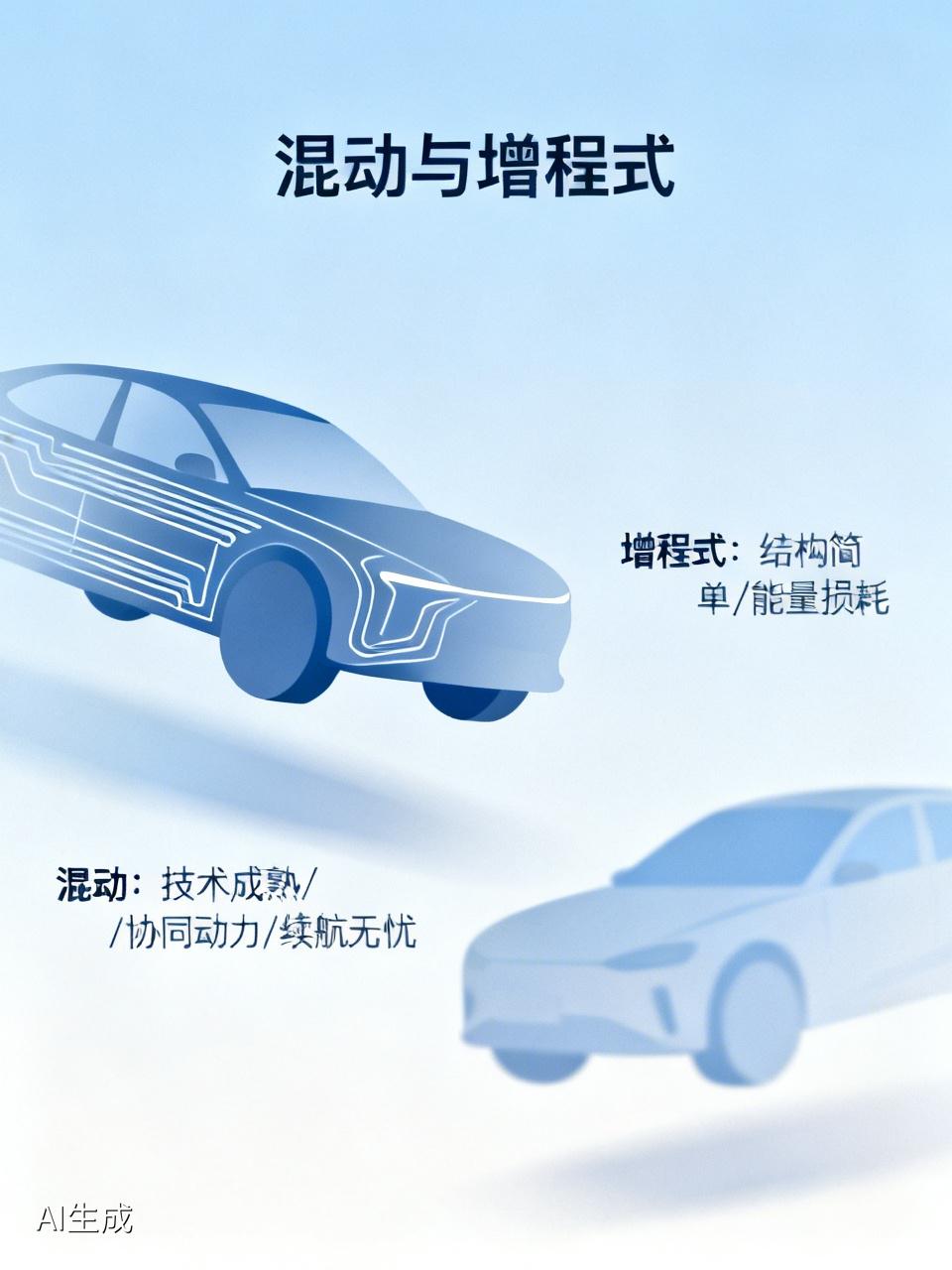 增程式虽然也有优点,比如结构简单,但它本质上还是靠发动机发电给电池,再由电池驱动电机,能量转换过程中会有损耗。相比之下,混动在能源利用上更高效,所以我站混动这一边。
