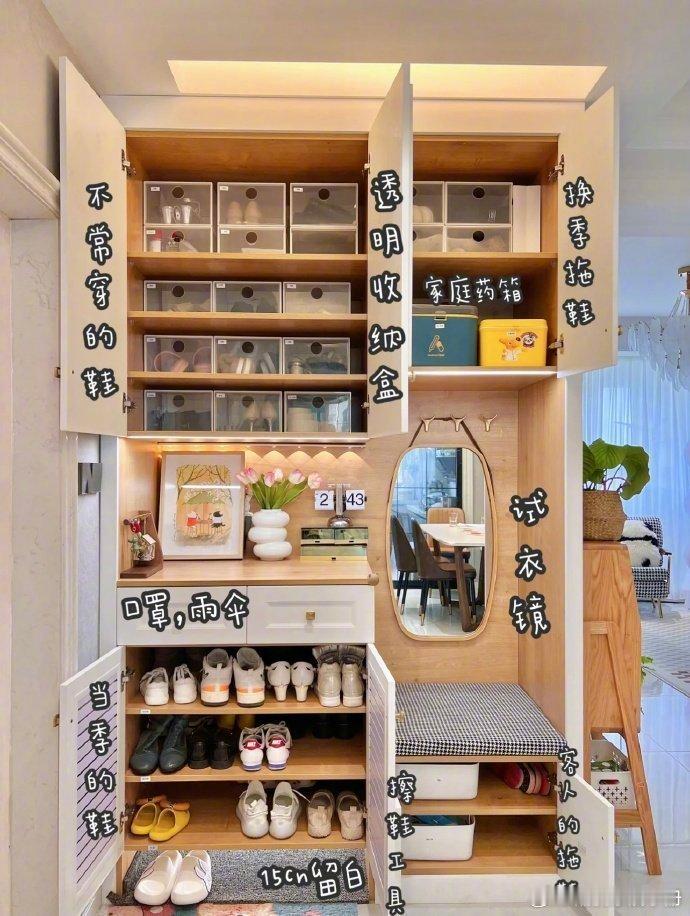 我家那个位置挺吃亏呀,邻居家占的满满当当,又是鞋柜,又是婴儿车,连门顶上还打个