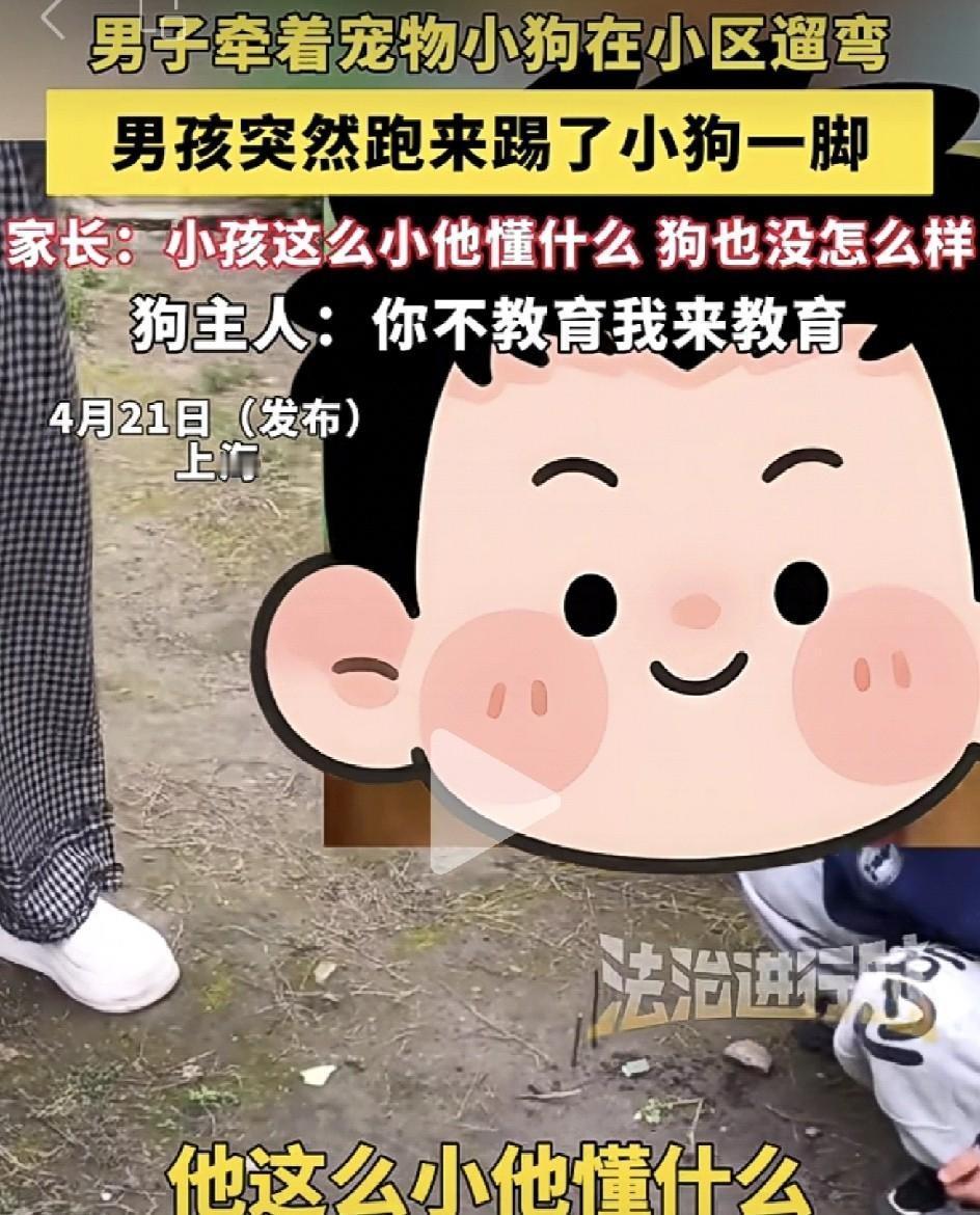 狗主人心疼坏了,一把捞起瑟瑟发抖的小狗,强压着心头的火气,试图进行一场理性的沟通:“小朋友,你刚才踢它,是因为觉得好玩吗?”