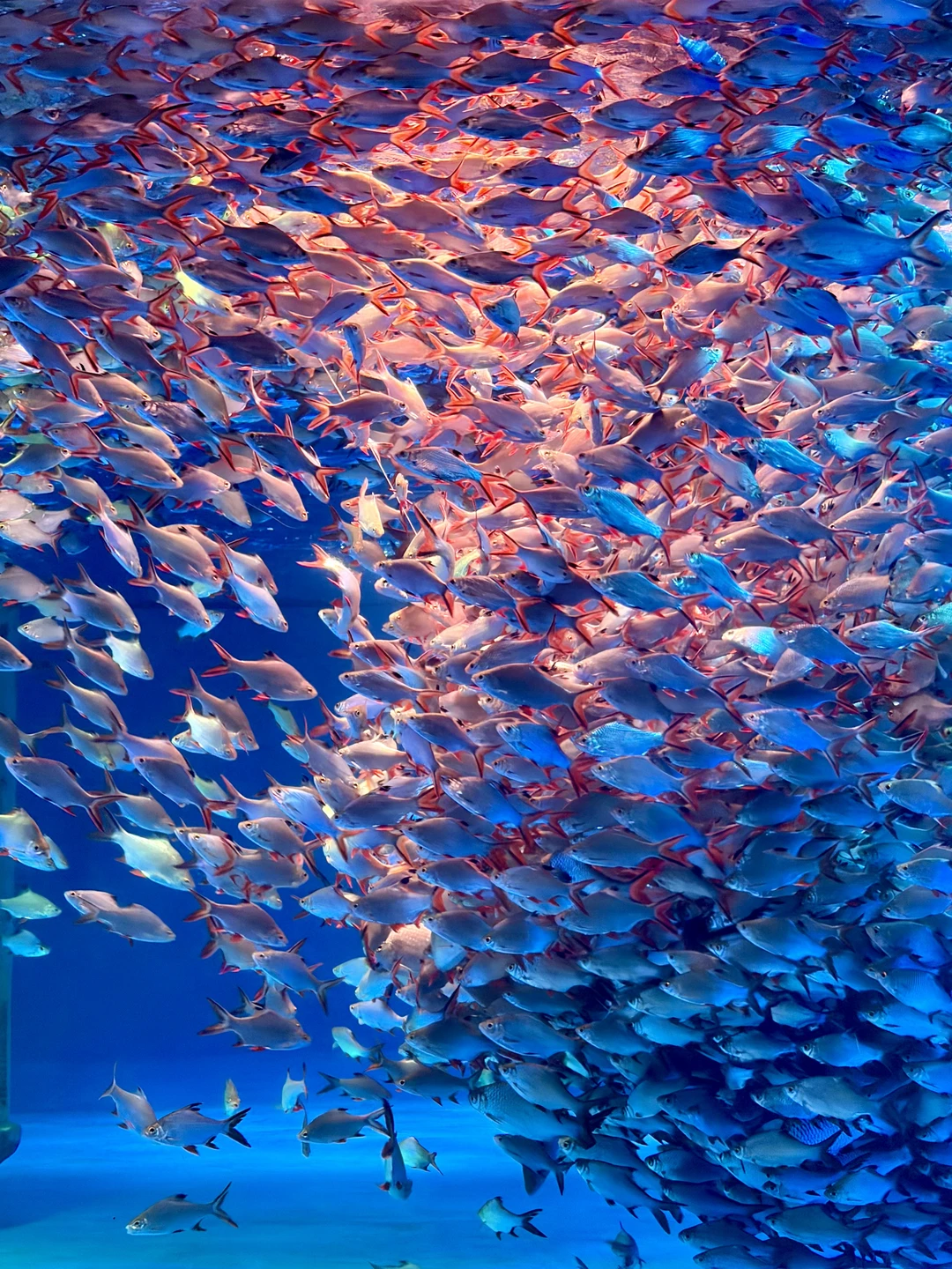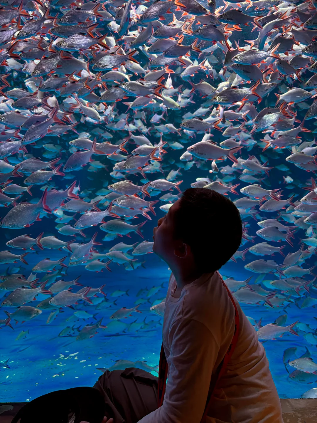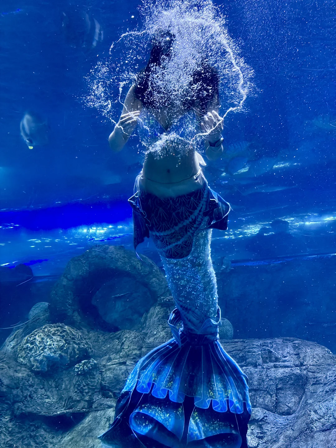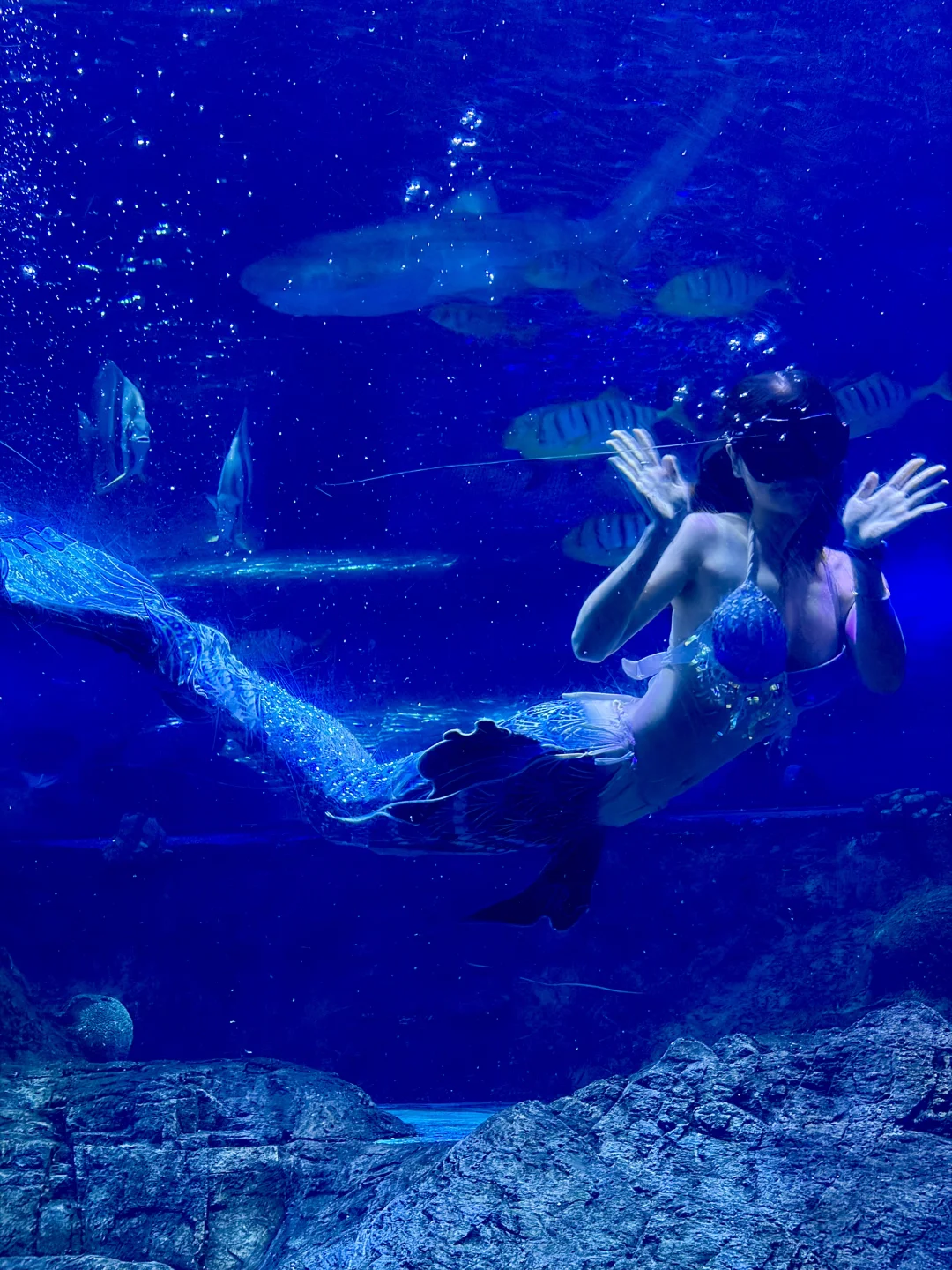 旁边海底秀场,美人鱼🧜♀️跟着鱼群一起舞蹈,小朋友们一脸惊喜,全程目不转睛地着。