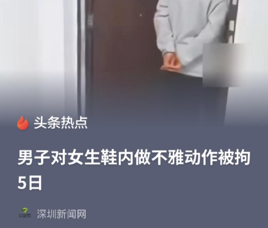 太变态了!湖北武汉,20岁年轻男子垂涎女邻居的美色,不能得手,竟然对她的鞋子下手了。男子对着女邻居的鞋子做出不雅动作后,还把灌满体液的鞋子光明正大地摆放到女邻居家门口。女邻居发现后,崩溃不已,报案了,男子被拘留了5天。更令女邻居崩溃的是,男子表示自己穷的很,拒绝赔偿!