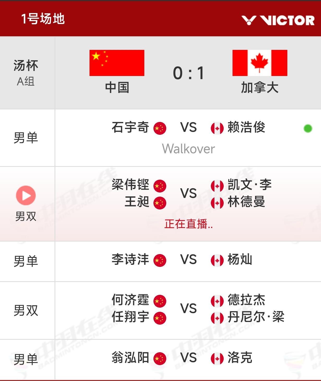 石宇奇退赛震惊!汤杯石宇奇退赛,中国 0-1 加拿大刚刚获悉: 石宇奇 今天早上身体不适,综合考虑身体和后续比赛因素,决定退出本场小组赛争夺!