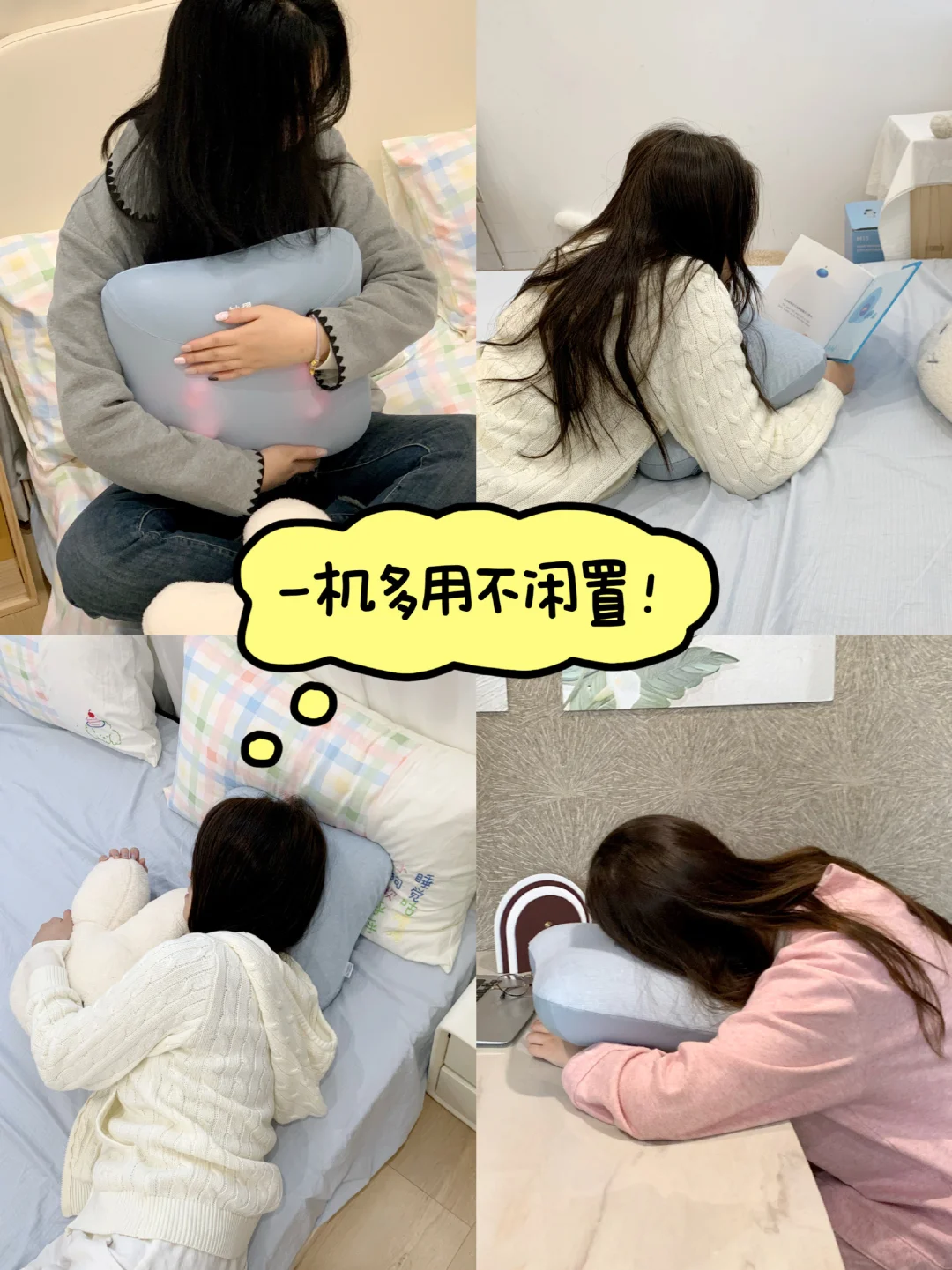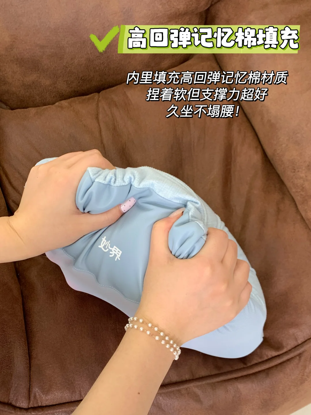 按摩+腰靠+抱枕的组合!慢回弹记忆棉的枕芯,软硬刚好,不会软塌塌的,当腰靠靠着能稳稳托住腰背,当抱枕抱着也舒服。