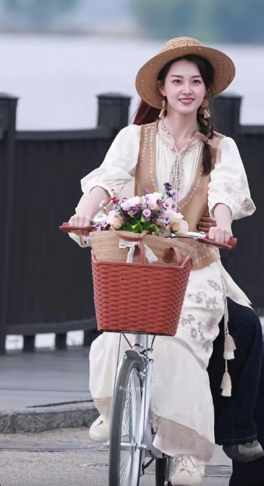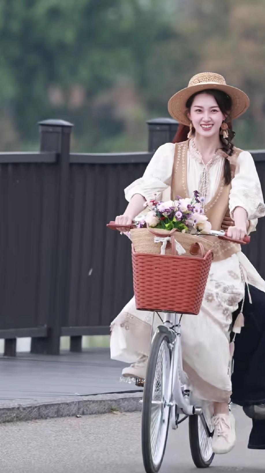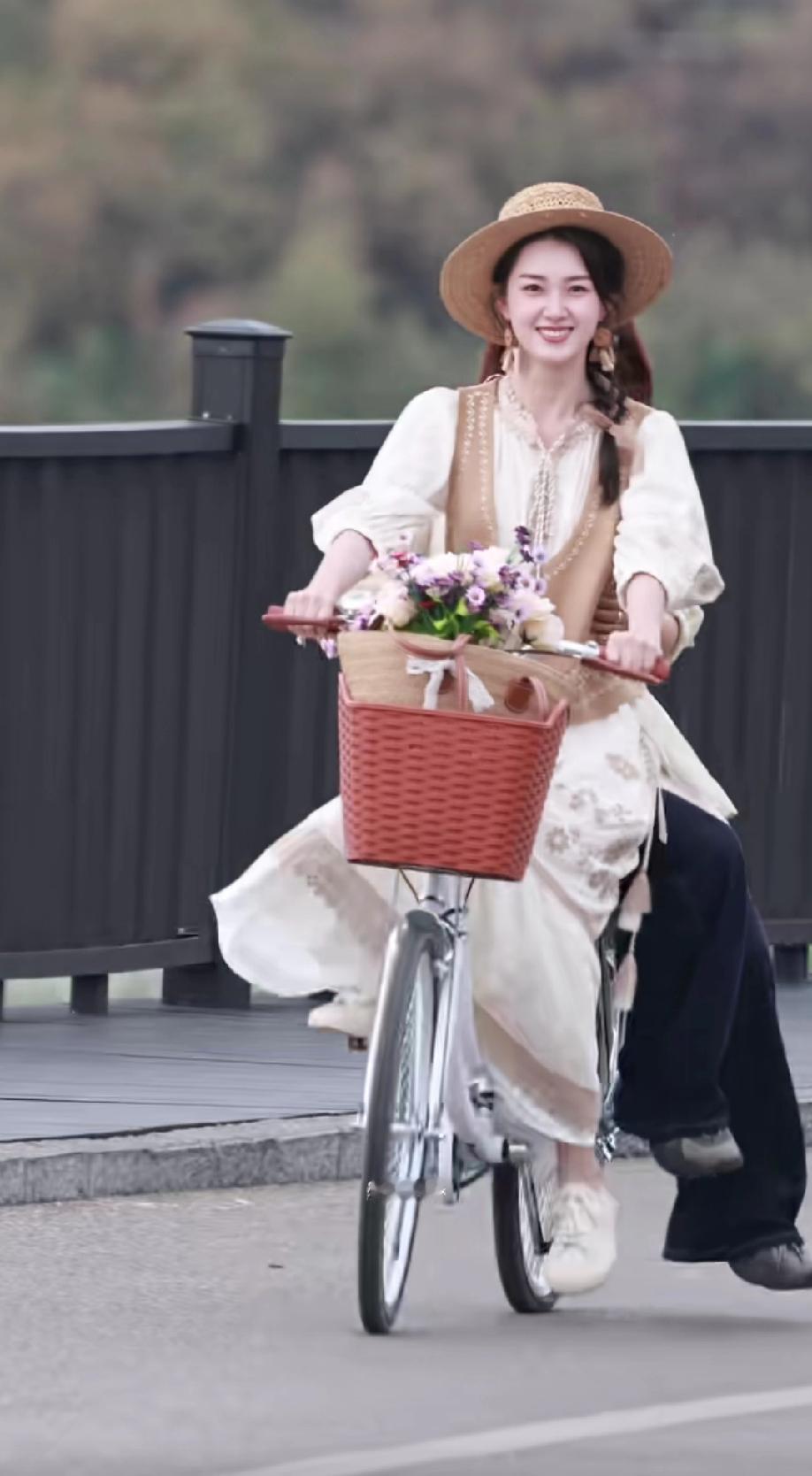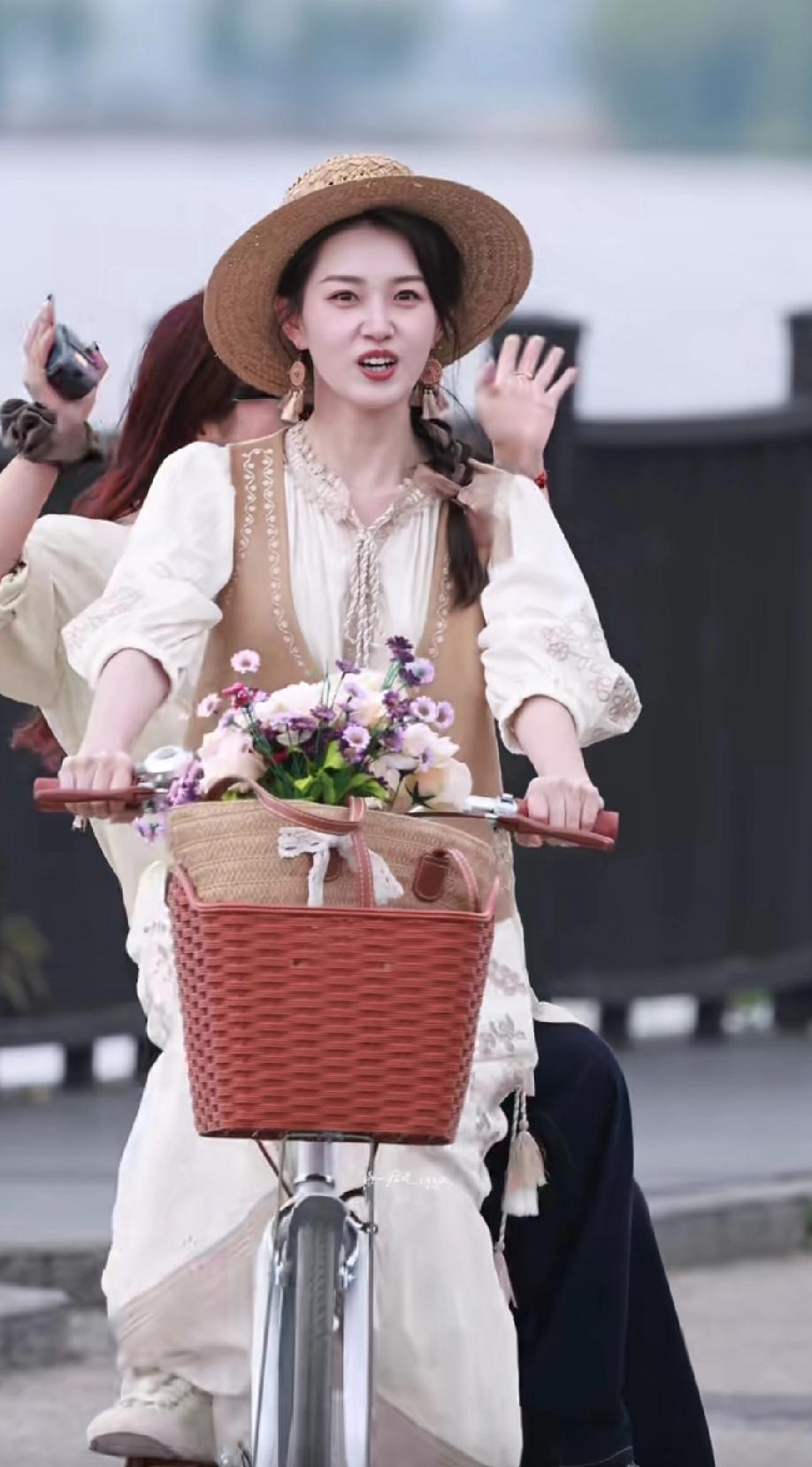 捕捉到骑单车的女孩,原来是郭宇欣呀!她在大理的海边骑行,诗帆导演坐在后座上,好松驰惬意呀!