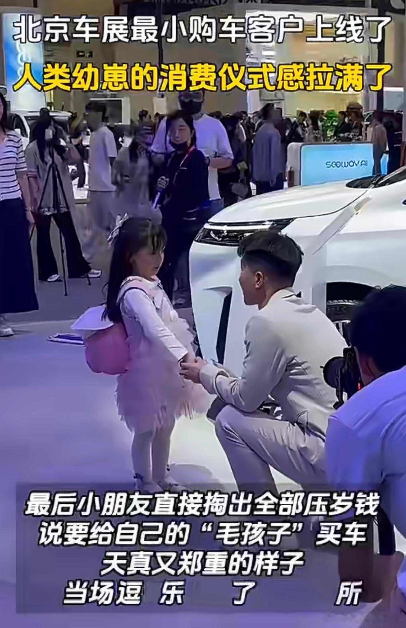 北京车展最小购车客户上线了北京车展萌娃化身最小购车客户,认真选车可爱出圈。工作人员温柔接待,谁能拒绝这份纯粹童真,太治愈暖心!这辈子都没接过这么特殊的客户