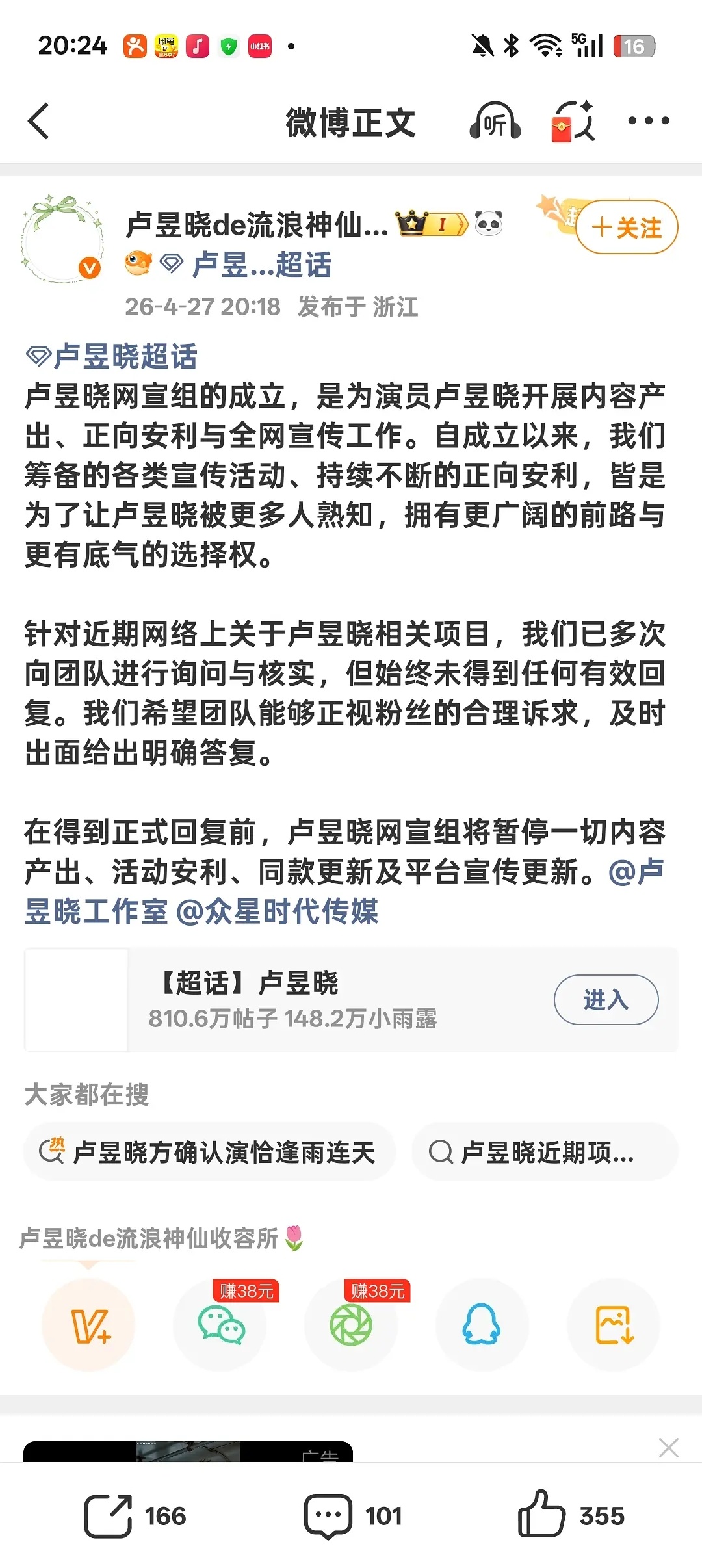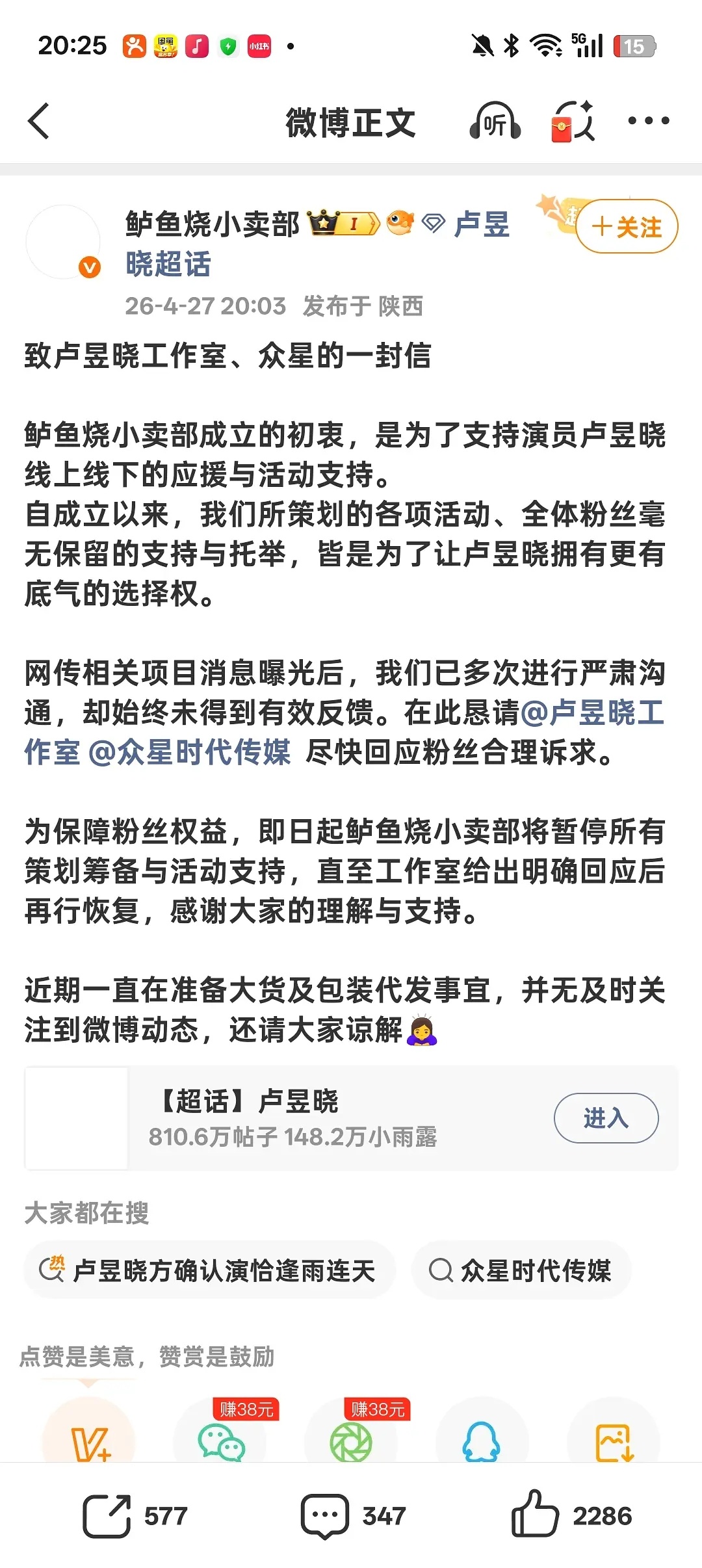 卢昱晓粉丝维权拒接恰逢