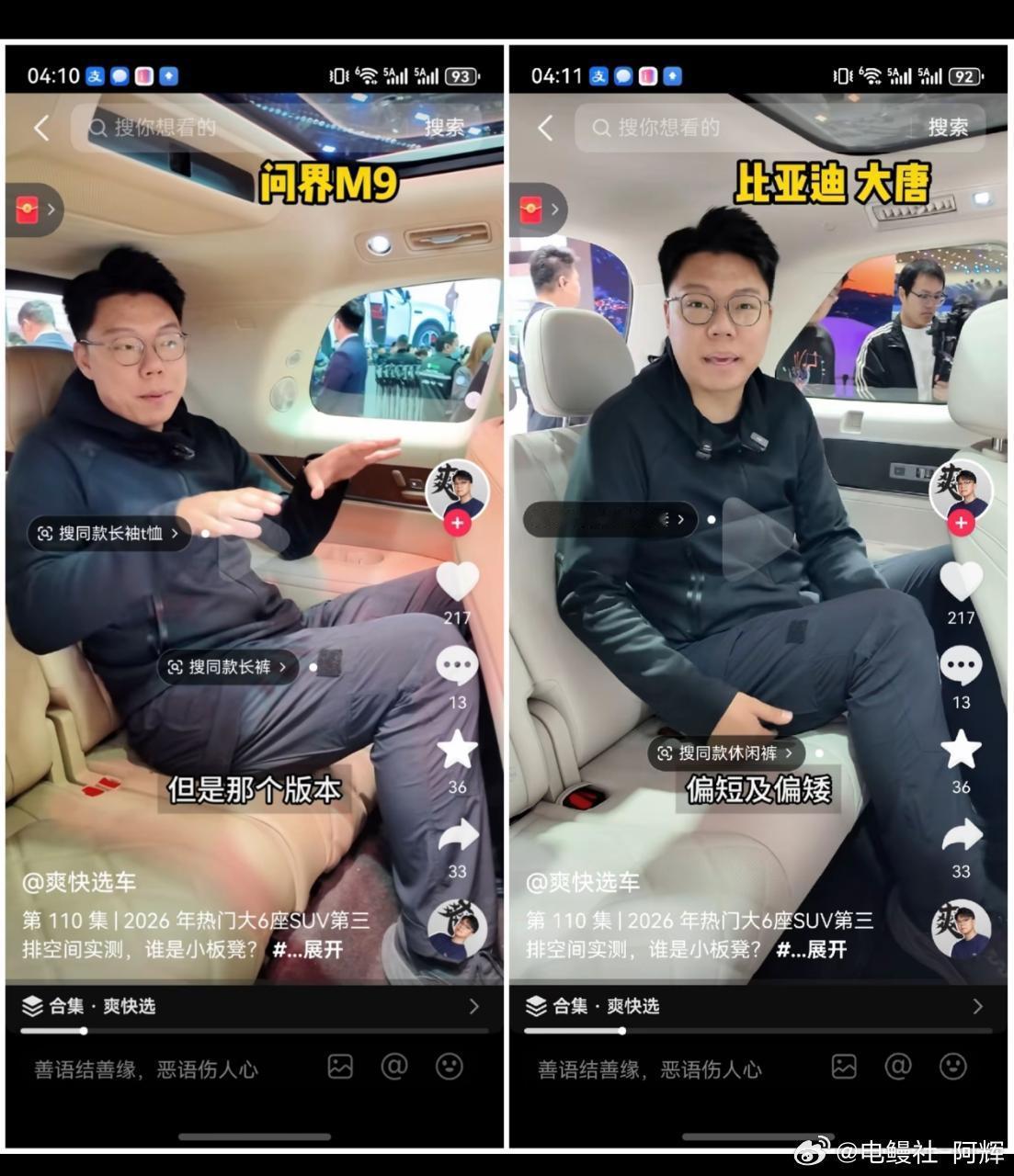 问界M9头都快顶上了,然后评测说空间也不至于那么压抑?然后评测比亚迪大唐时这么大空间说不是那么到位,我想这位博主走的是反差赛道吧,也就是睁眼说瞎话系列!!!大v聊车