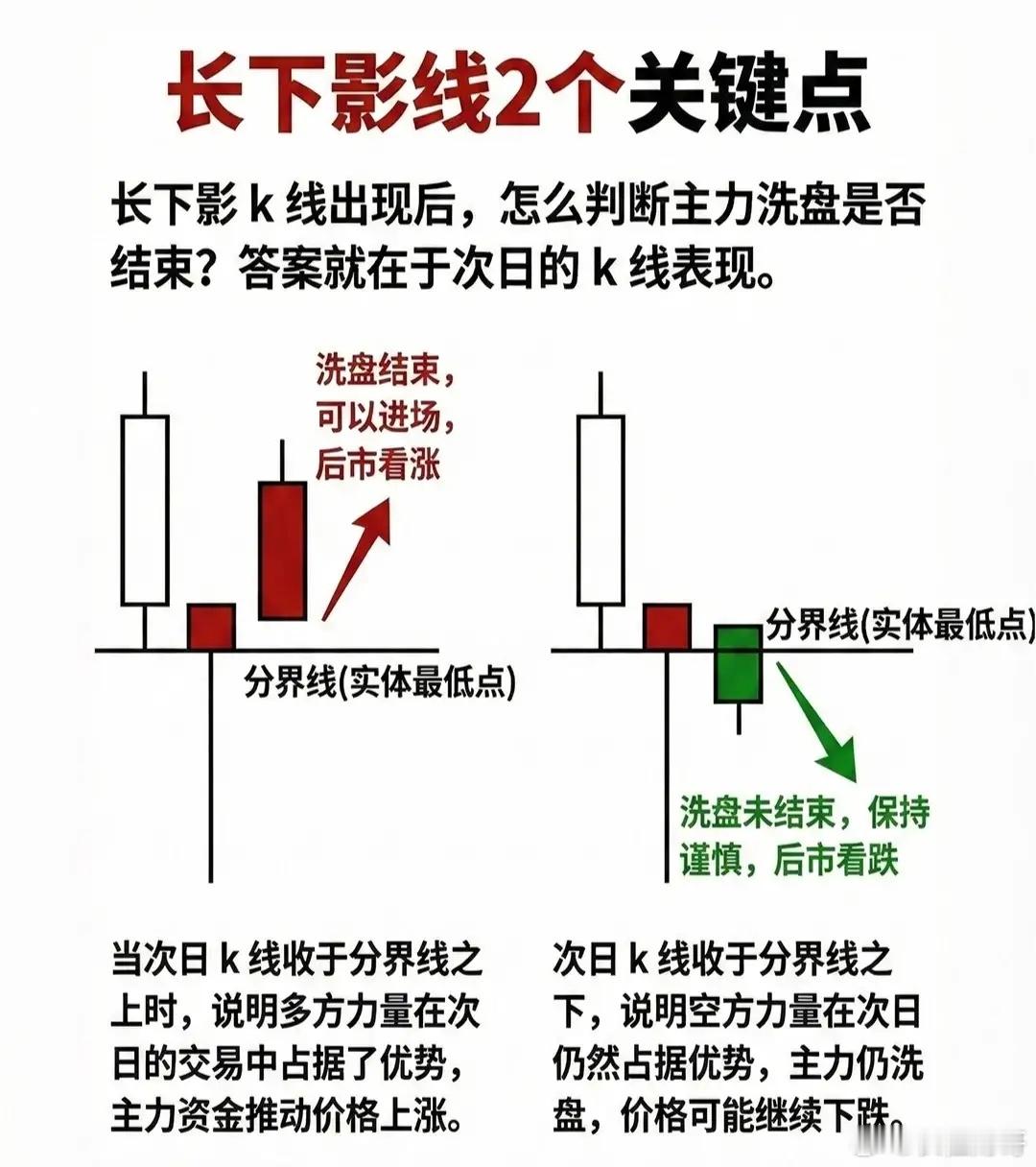 关键原则: 长下影线出现后,主力洗盘是否结束,取决于次日K线的表现。