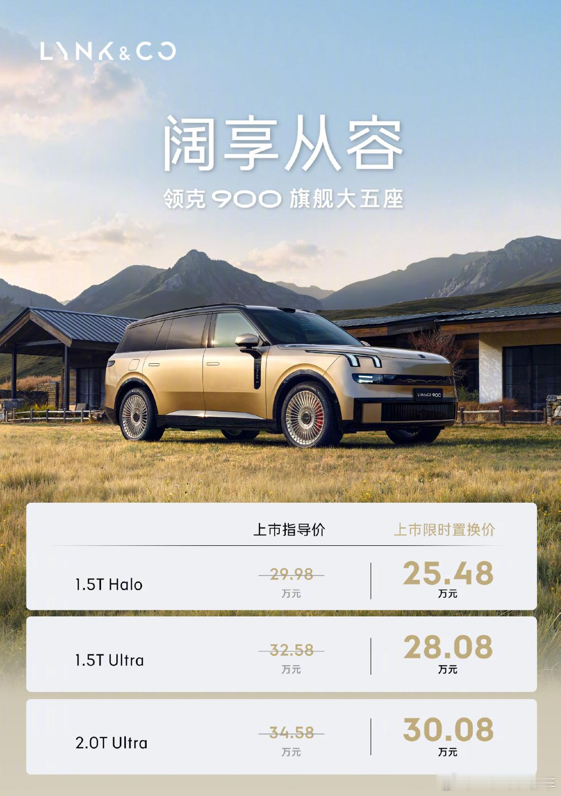 领克900为什么要做这么大的五座 今晚正式登场!限时置换价 25.48 万 - 30.08 万,比六座版更亲民。