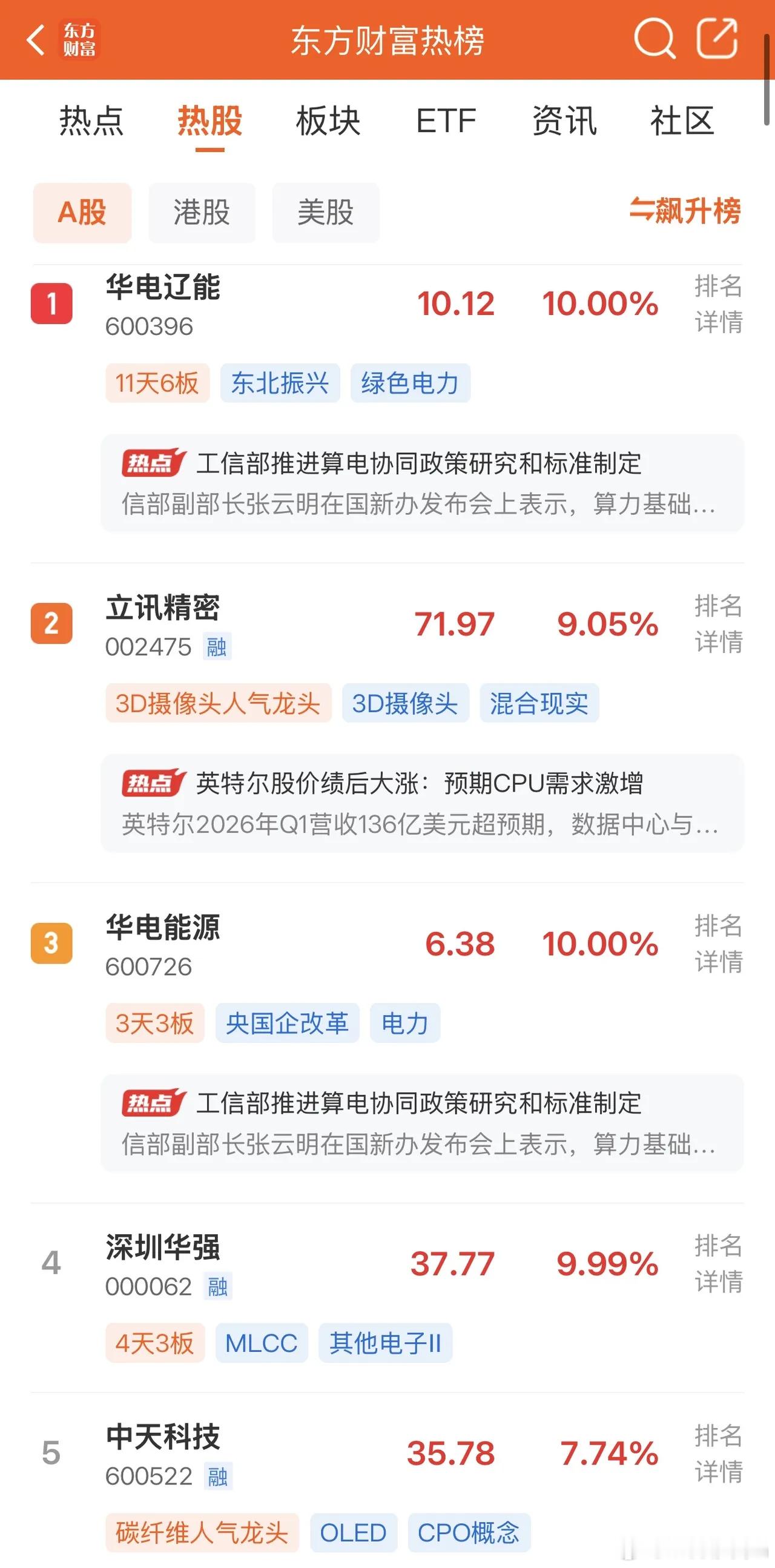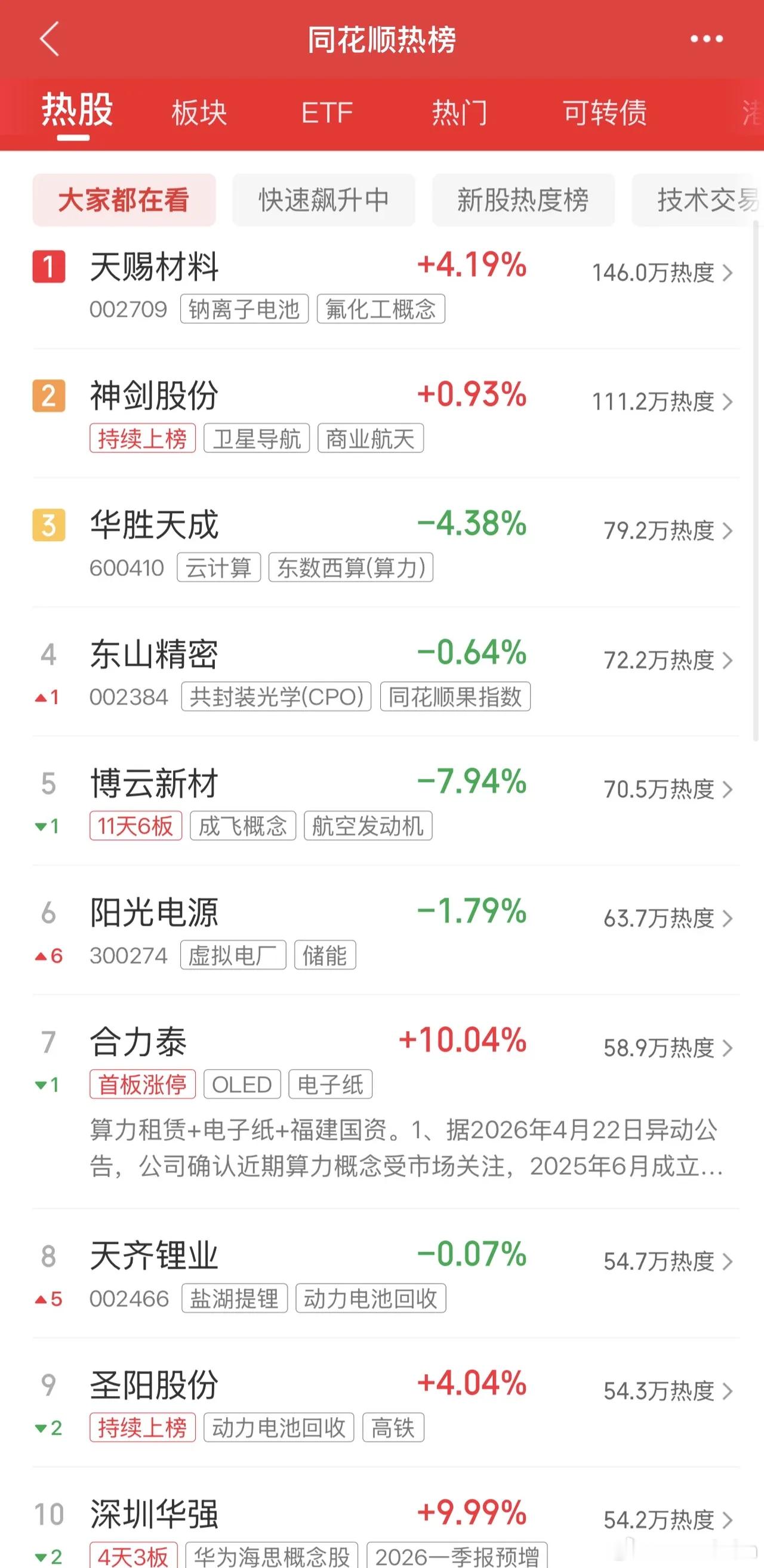 20266年4月27日,各大股吧前十热股:淘股吧: 1.水发燃气 2.深圳华强 3.华电能源 4.苏州高新 5.泰慕士 6.香农芯创 7.众合科技 8.金螳螂 9.维科技术 10.综艺股份 东财吧: 1.华电辽能 2.立讯精密 3.华电能源 4.深圳华强 5.中天科技 6.多氟多 7.江特电机 8.圣阳股份 9.天通股份 10.合力泰同花顺: 1.天赐材料 2.神剑股份 3.华胜天成 4.东山精密 5.博云新材 6.阳光电源 7.合力泰 8.天齐锂业 9.圣阳股份 10.深圳华强