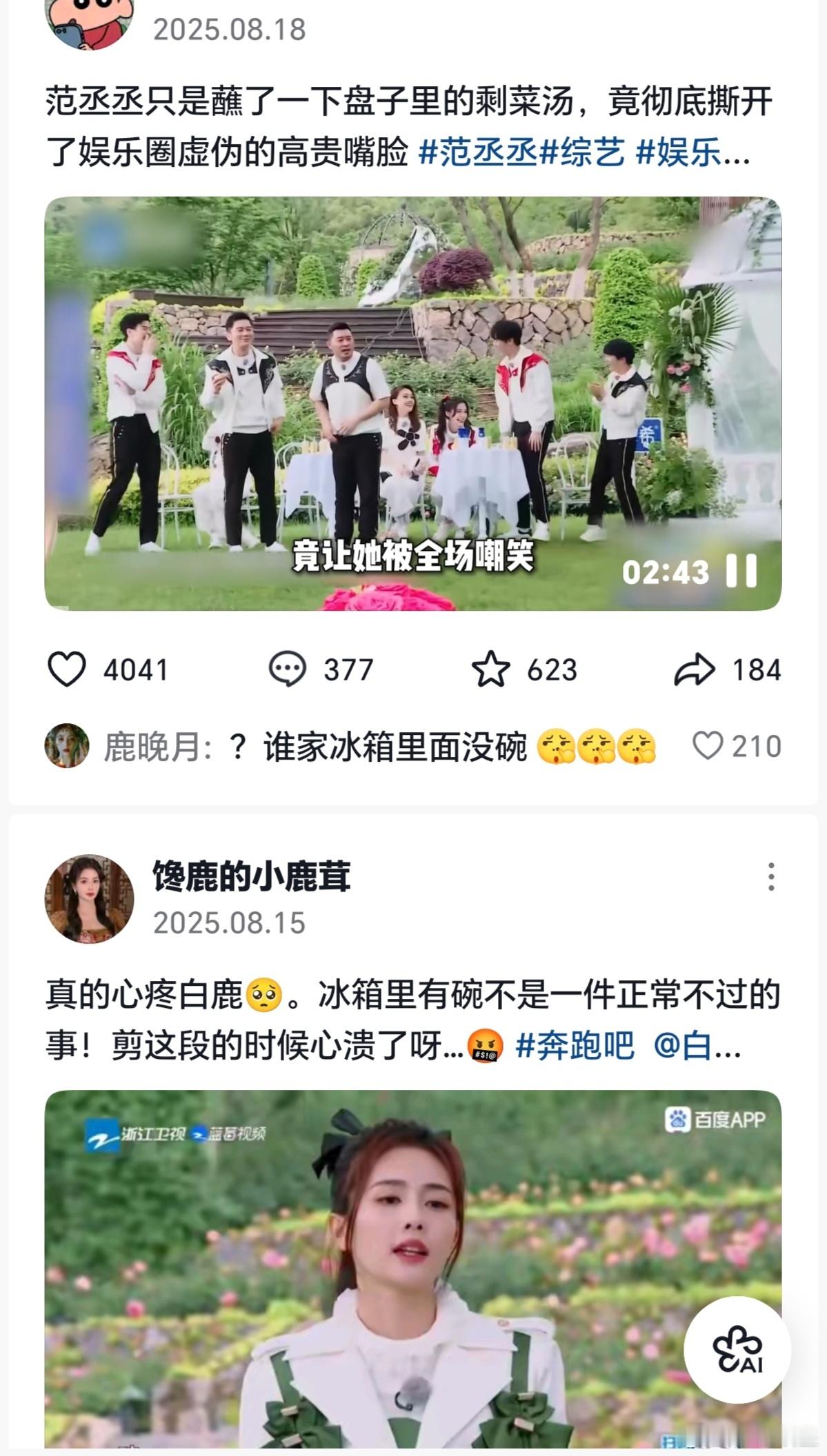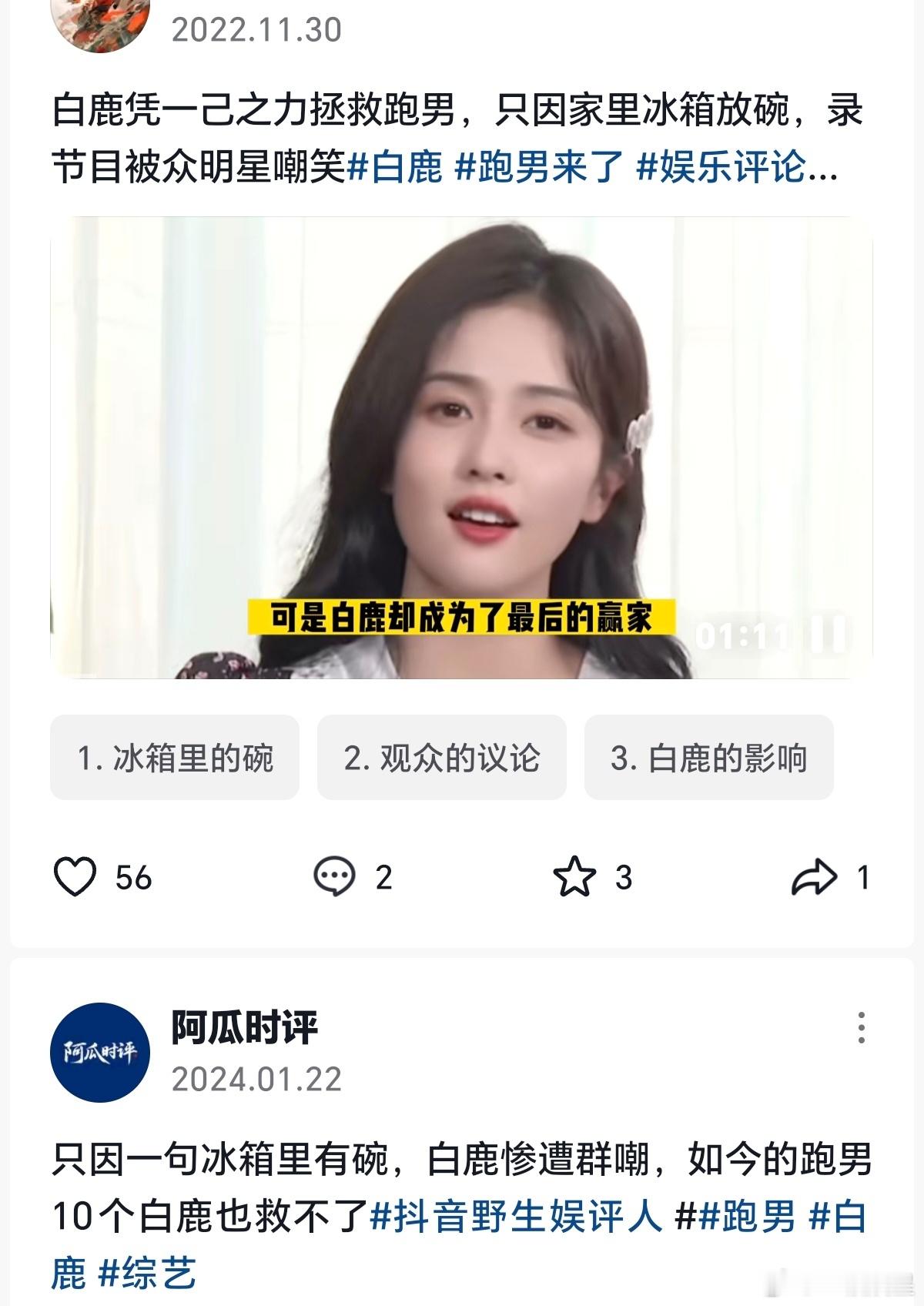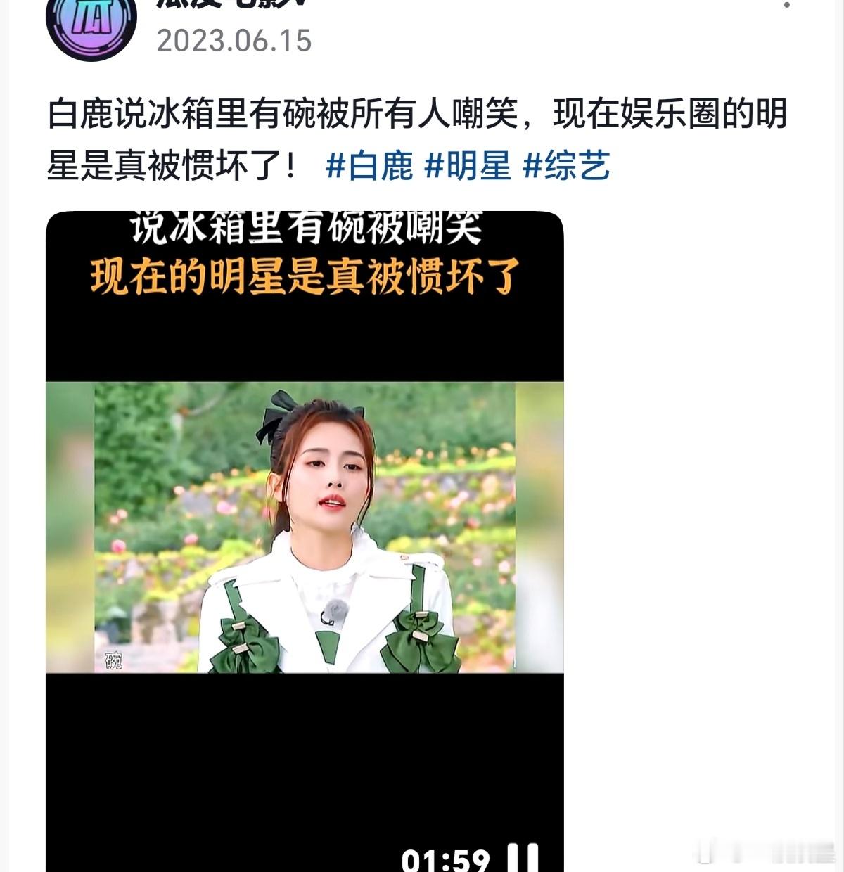 白鹿跑男发言引观众不满 之前冰箱放碗,她一大波营销,其他人被骂惨了,尤其是乔欣,