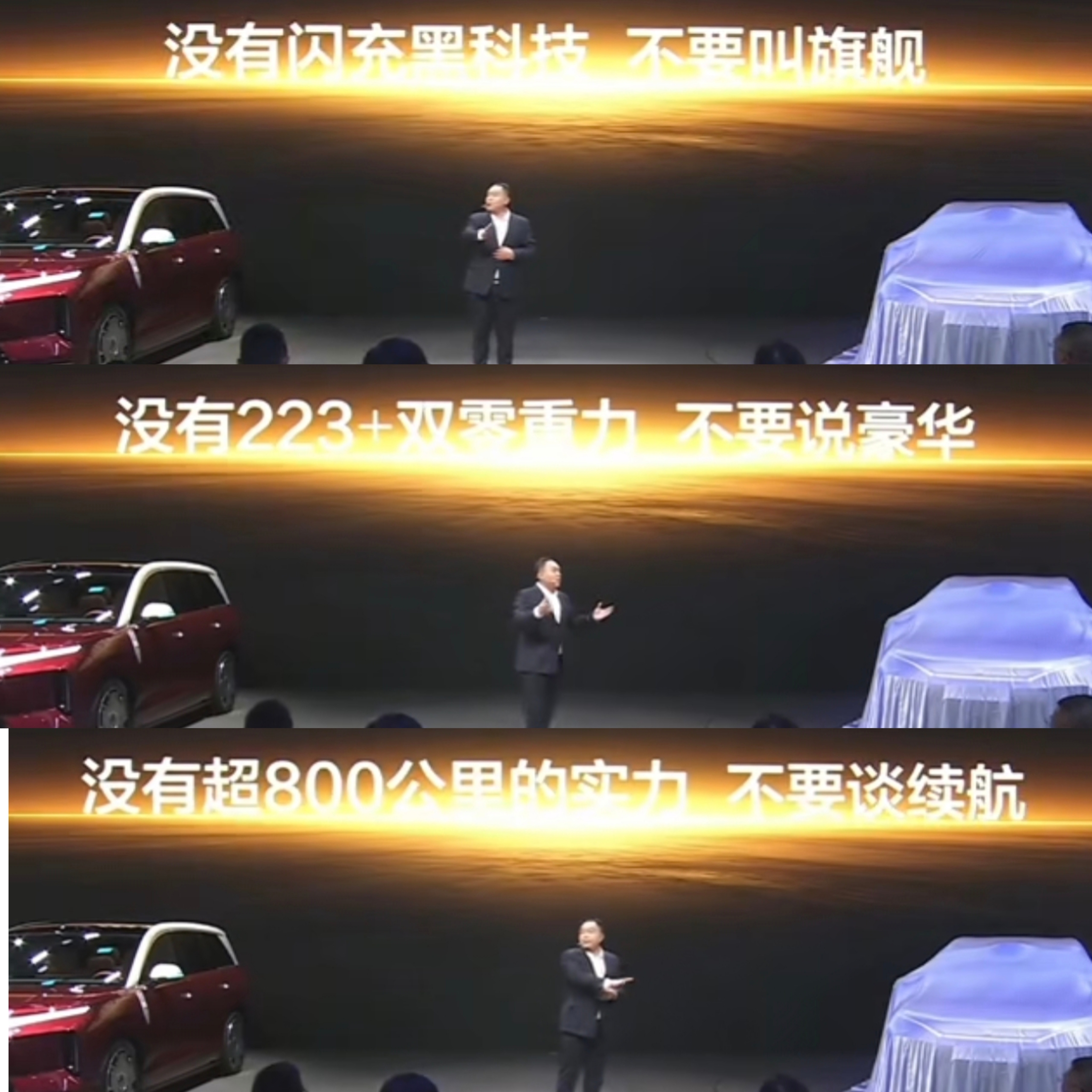 而且,比亚迪也没主动踩别人,友商拿PPT就开发布会的,可是全程拉踩比亚迪的。