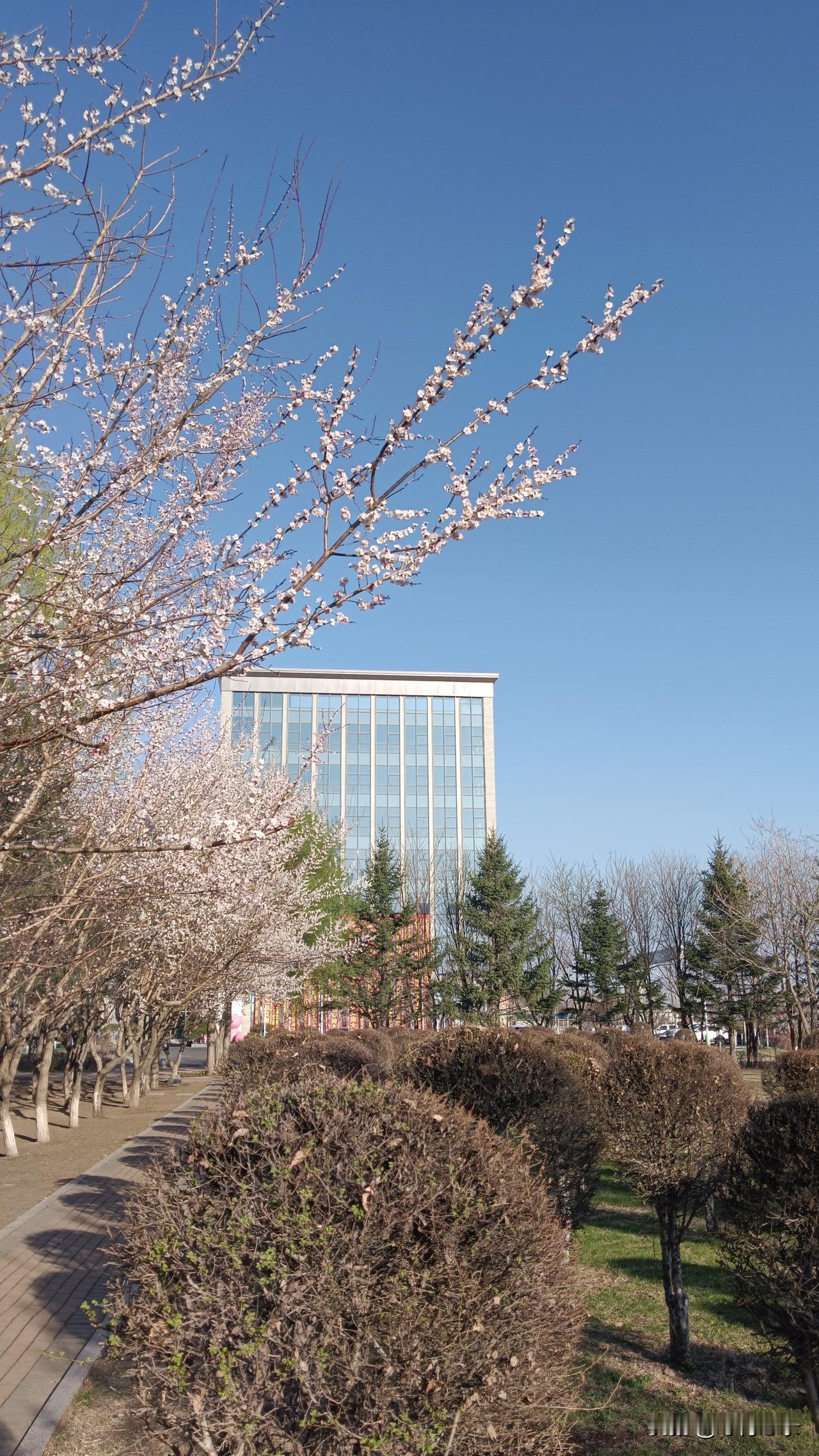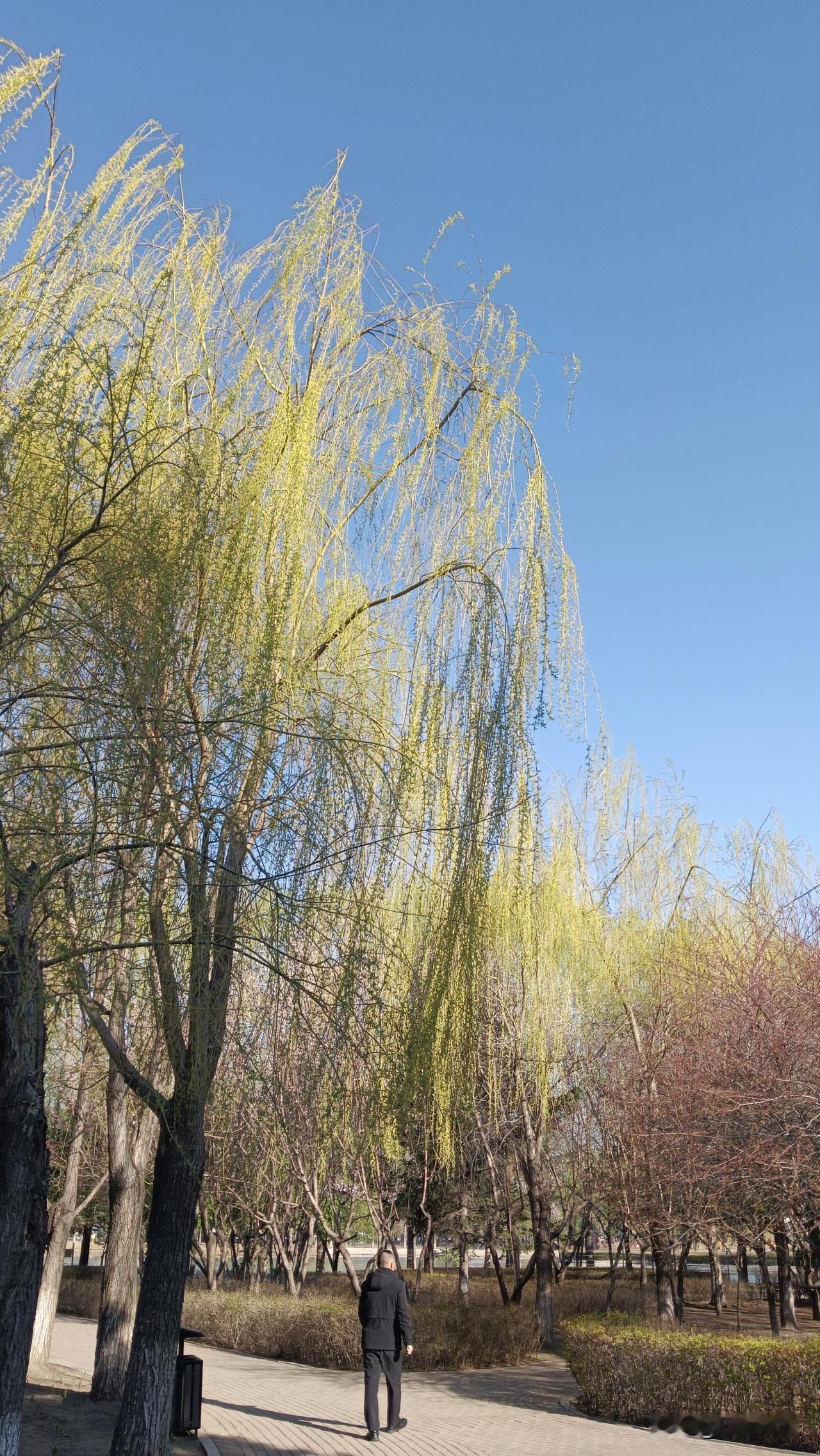 市政府办公大楼前面的人民公园绿柳成荫,沐德湖碧波荡漾,好一派祥和景象。