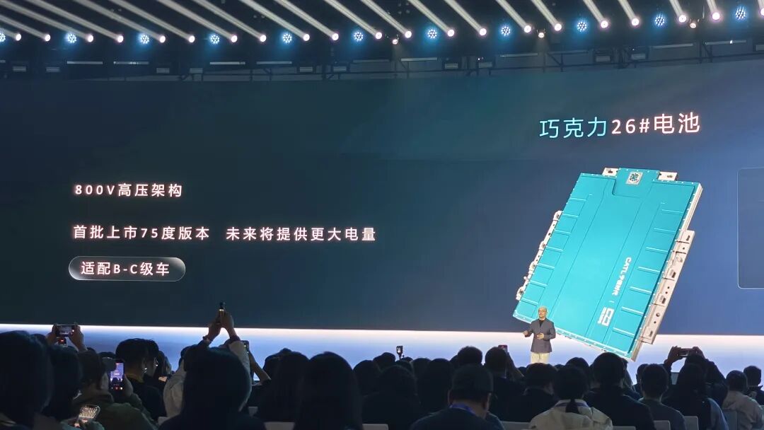 在产品端,宁德时代发布了“巧克力26号电池”,采用800伏高压架构,首发75度电版本,后续还会有更大电量版本,适配B到C级800伏车型。