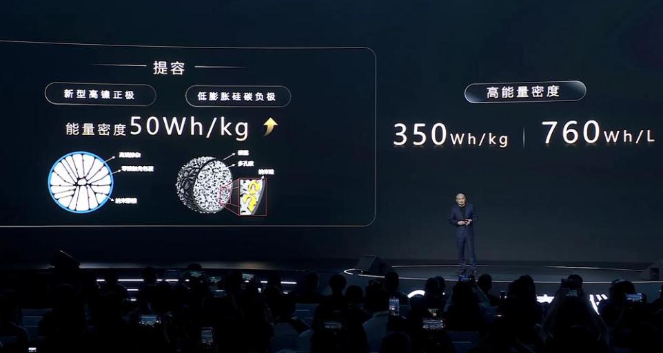 其电芯能量密度350Wh/kg,体积能量密度760Wh/L;电池包重量控制在650公斤以内,能实现CLTC续航1500公里。