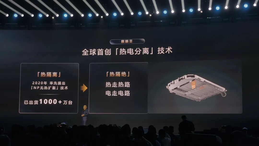 安全方面,在2020年推出的“NP无热扩散”技术上,第三代麒麟升级为“热电分离”技术。