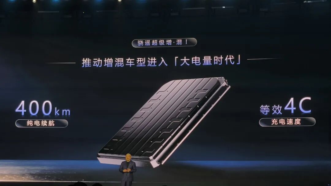 两年前,第一代产品做到了400公里纯电续航+4C超充,把增混车带入了“大电量时代”。2025年销售的纯电续航超300公里的增混车,95%以上用了骁遥。