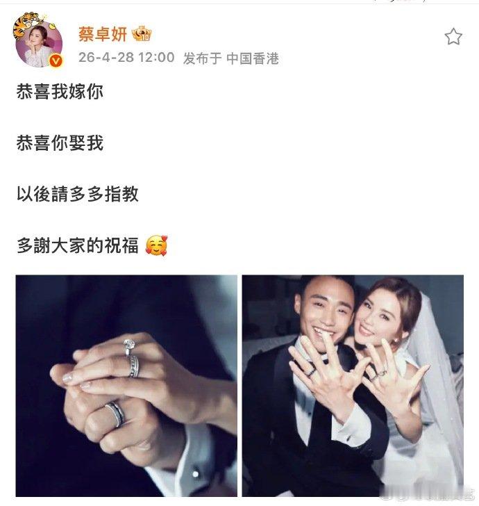 蔡卓妍官宣结婚阿sa蔡卓妍官宣结婚 蔡卓妍官宣结婚,恭喜姐姐!