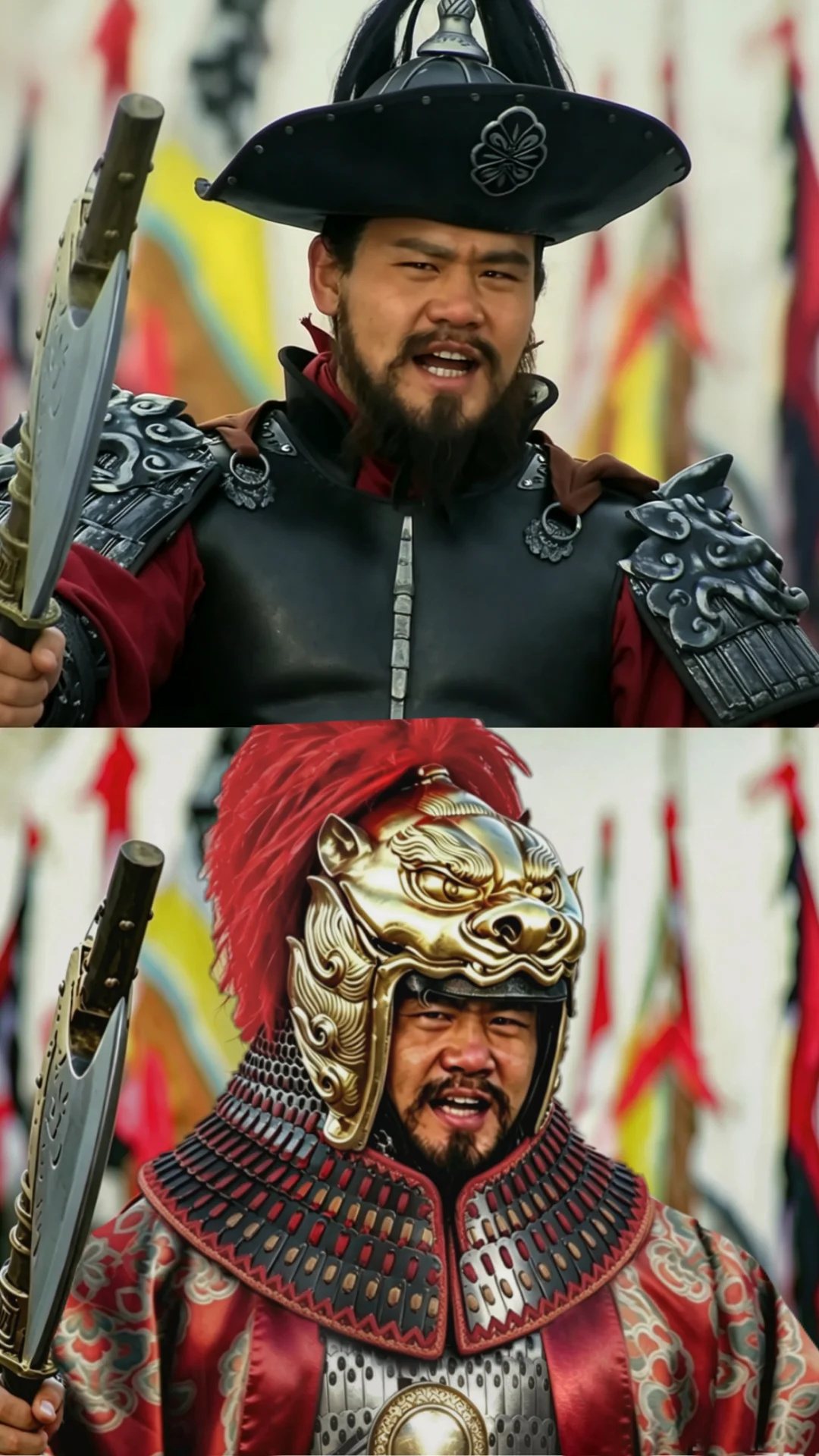呼延灼却是冲天脚铁幞头,销金黄罗抹额,七星打钉皂罗袍,乌油对嵌铠甲,骑一匹御赐踢雪乌骓,使两条水磨八棱钢鞭。
