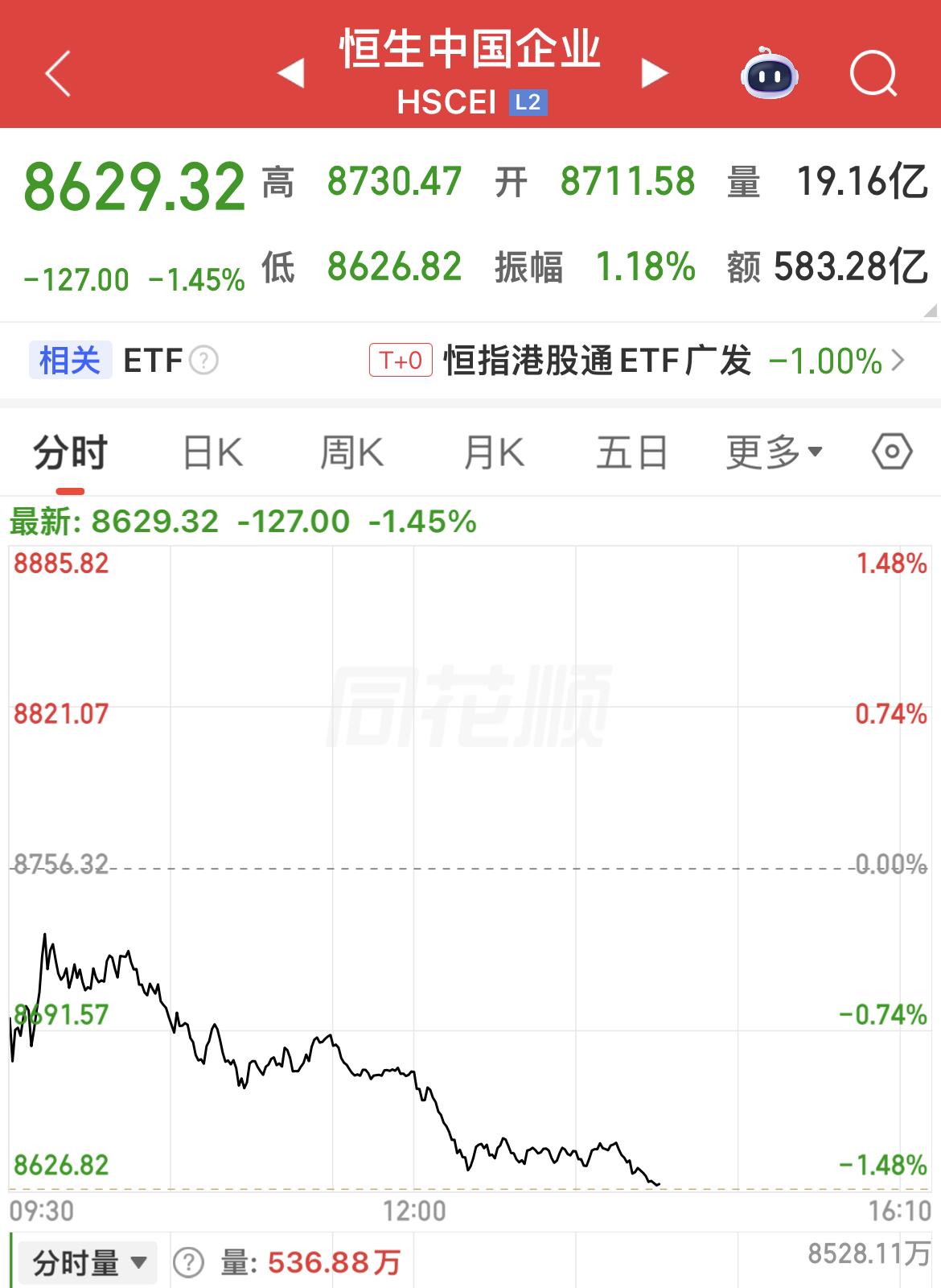 今日港股受五一假期外围不确定性、地缘冲突等因素影响,资金避险情绪升温,走出低开低走行情。