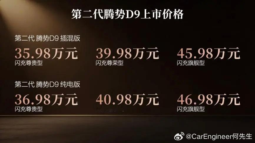 第二代腾势D9改款上市,而且是涨价了5万上市,如果算中间款,可以说是涨价7万。