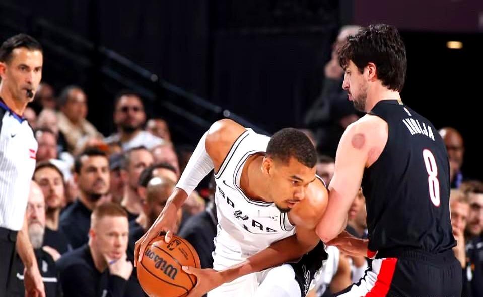 结果中场休息15分钟,回来直接换了个队。文班亚马睡醒了,下半场攻防一把抓,硬生生把开拓者内线命中率压到40%以下。