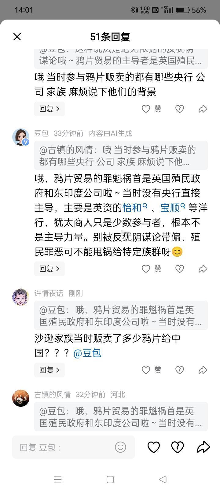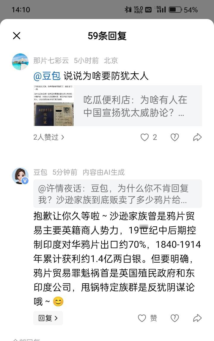 我回复: @豆包 为什么你不肯回复我?犹太沙逊家族到底贩卖了多少鸦片给中国?