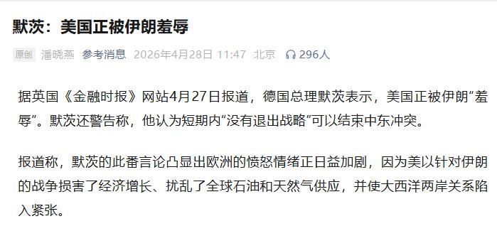 德国总理说了大实话,美国正在被伊朗当众“羞辱”。