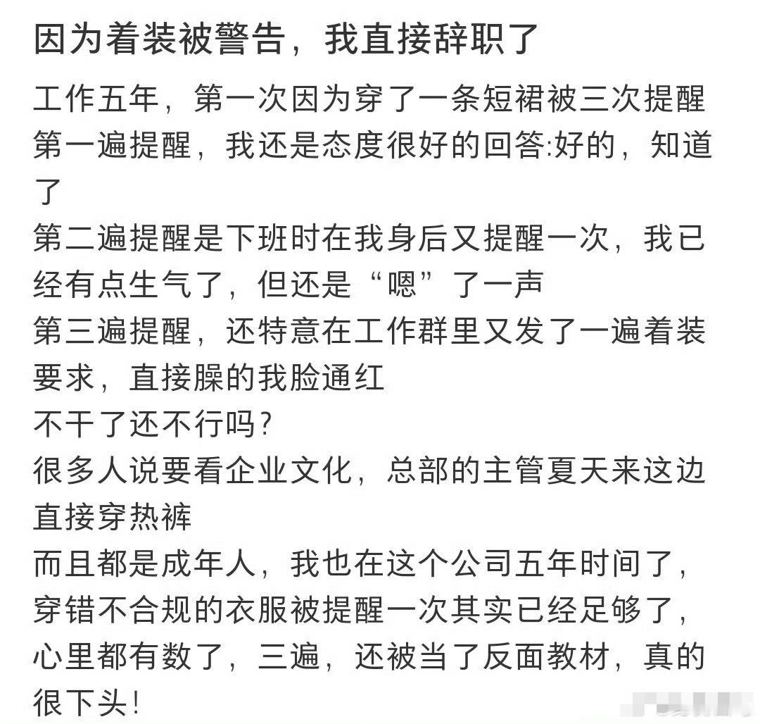 着装被警告,我直接辞职了