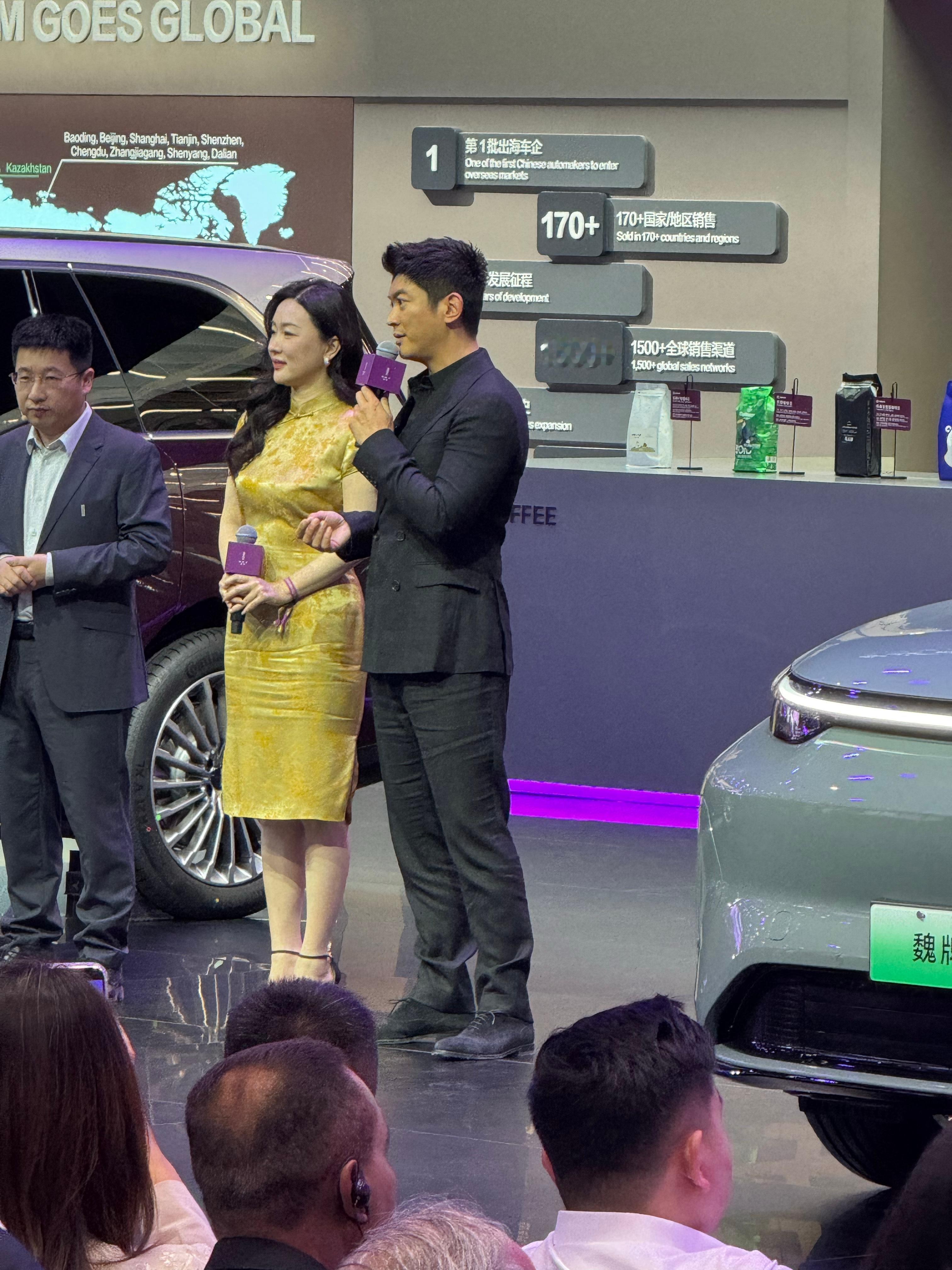 翻看了下车展期间拍的照片,发现这次车展一共没来几个明星,但竟然碰见了好几个。我去长城集团展台的时候,刚好魏牌邀请霍思燕和杜江上台。