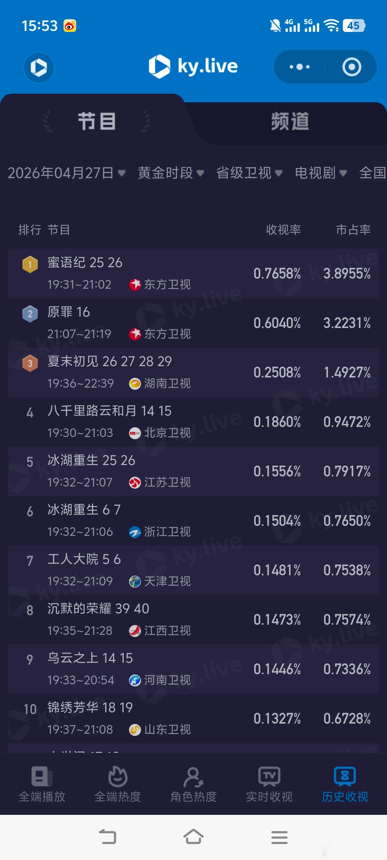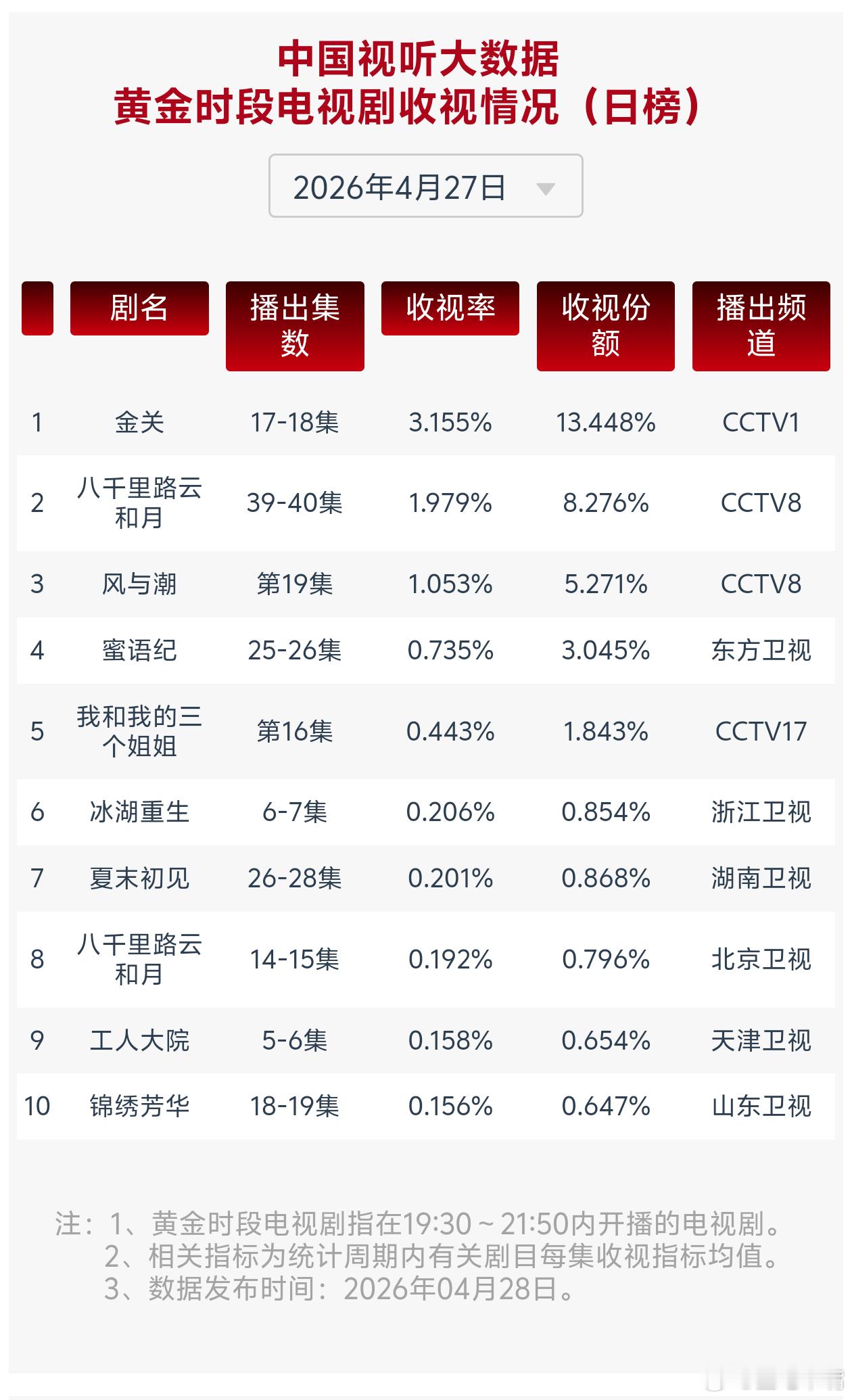 朱珠床戏给我看热了4月27日cvb收视日报,《蜜语纪》创新高!《八千里路云和月》大结局1.979新高,全剧cvb集均1.833!