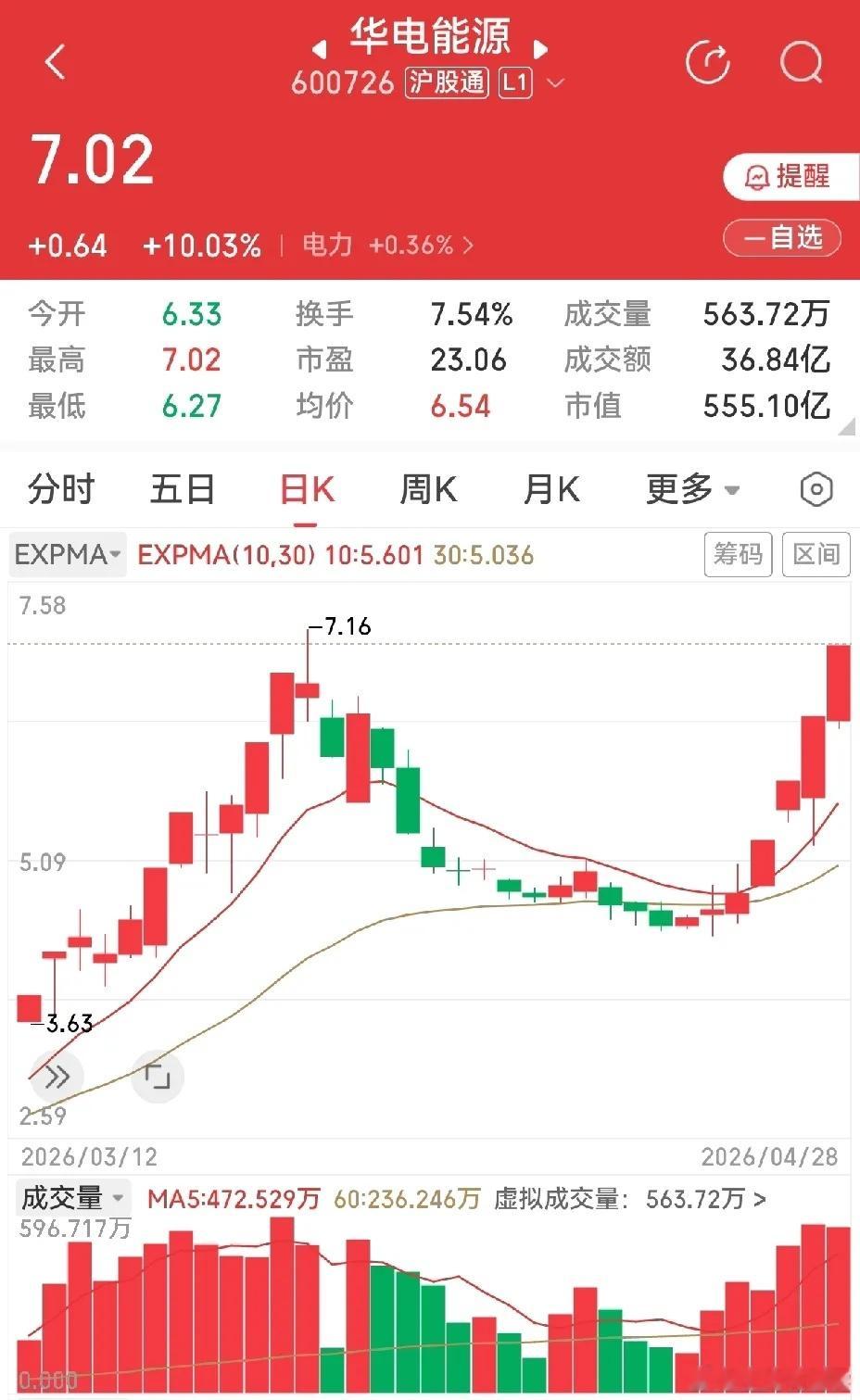华电双雄双双走强,轮番扛起板块行情。前期八连板的华电辽能,本轮三连板后断板休整,六天四板再创阶段新高。日内全天震荡偏弱,午后受华电能源涨停带动冲高摸板,最终没能封住涨停,让出电力龙头地位。