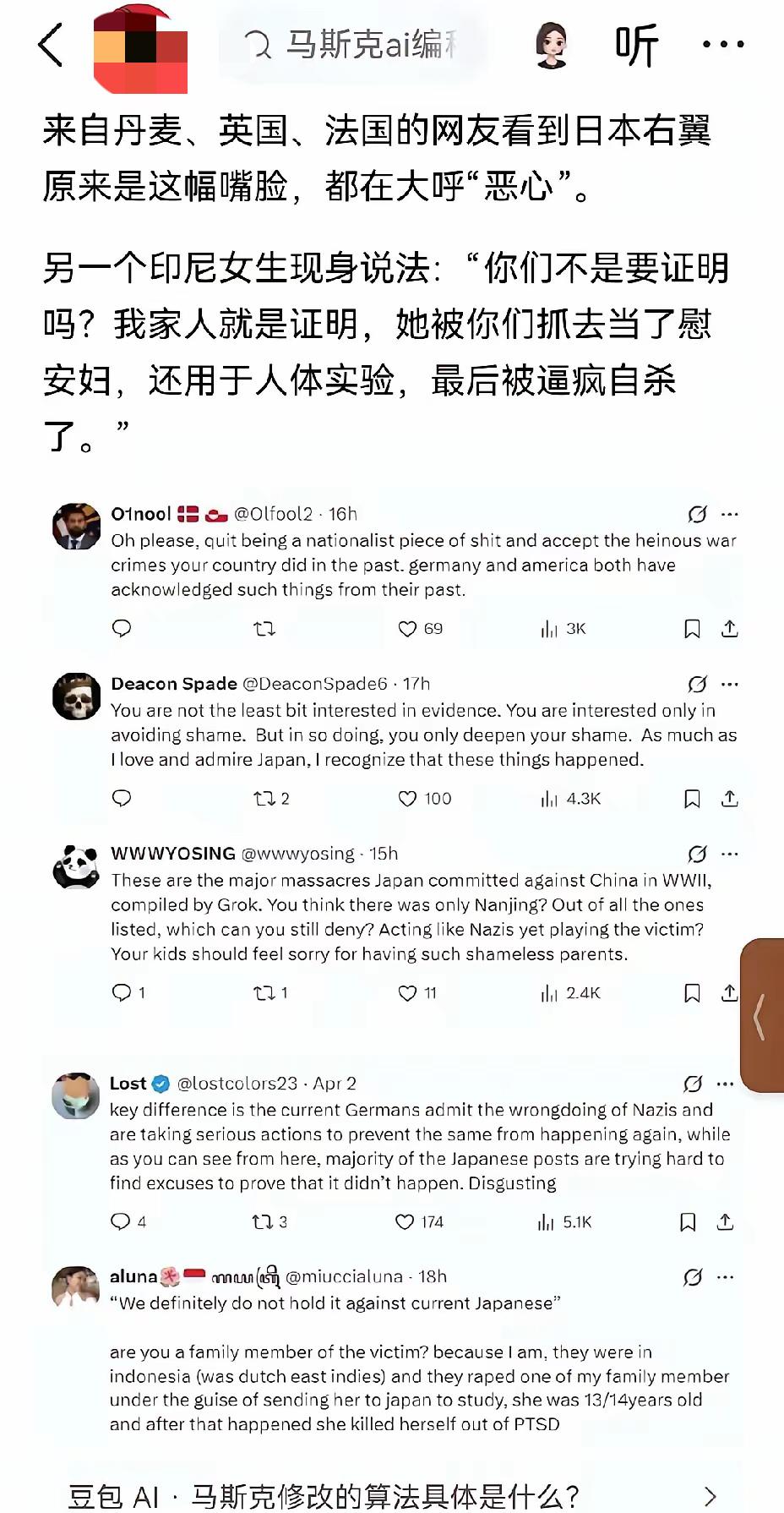以前总觉得日本人素质高、懂礼貌,很多人因为动漫、美食,对日本印象特好。可马斯克的X平台一上翻译功能,直接把日本人藏在日语里的那点脏东西扒光了。