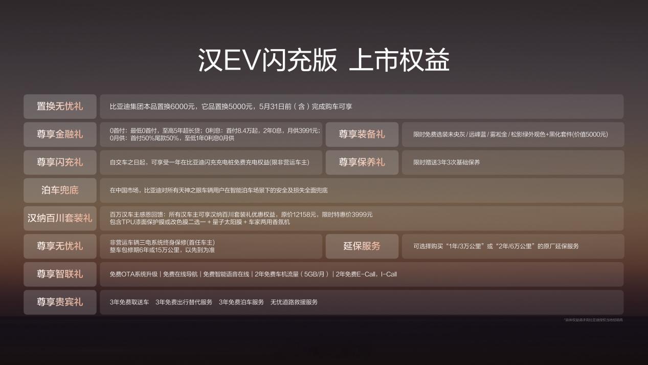 比亚迪闪充技术都了解了吧?汉EV来了。今日汉EV闪充版正式上市,17.98万元起,第二代刀片电池技术,一年免费闪充权益(这个比较牛逼,一年免费充电,我估算差不多能省两万块钱!)就问你笛子牛不牛!中大型轿车进入闪充时代