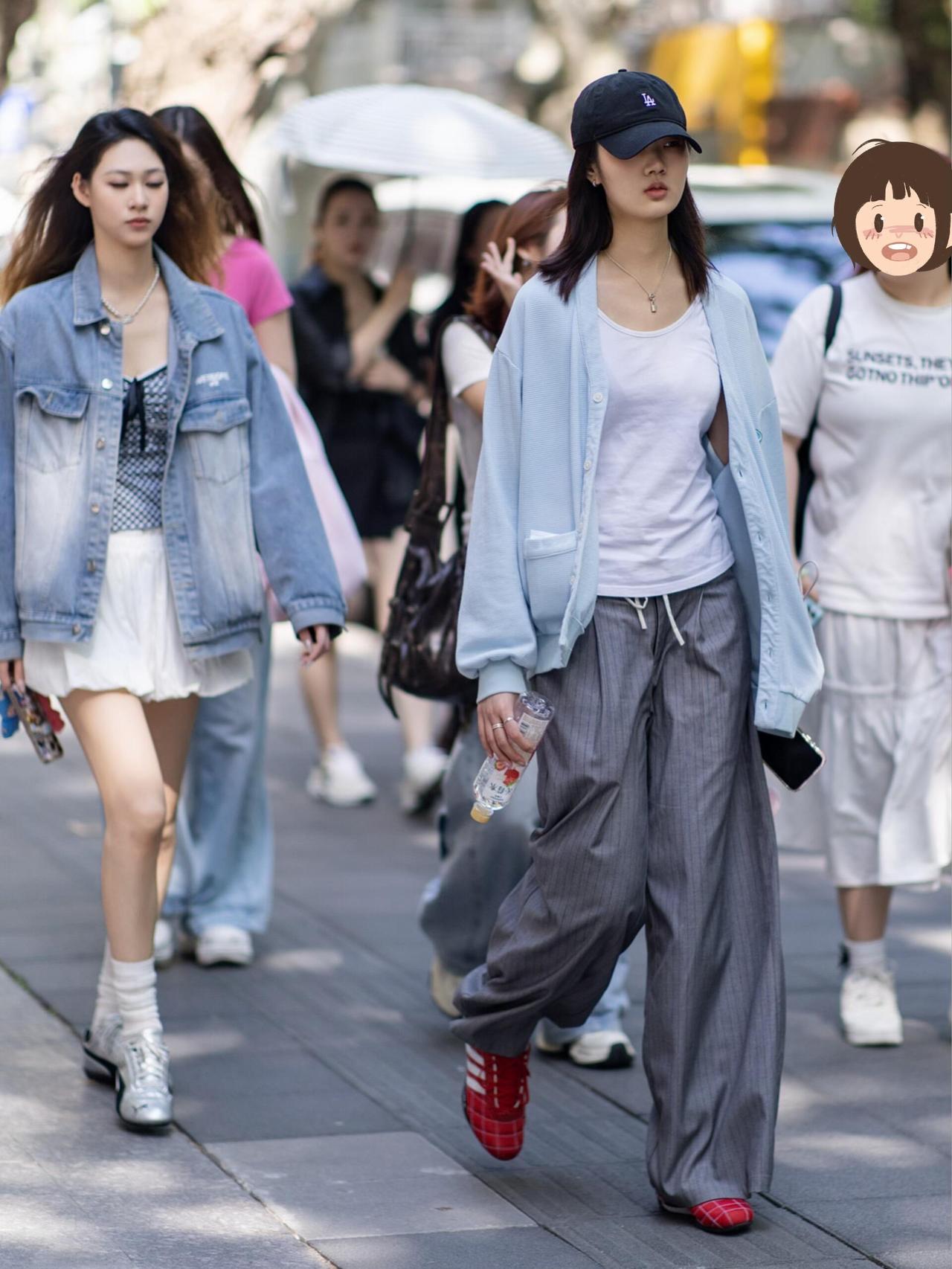 宽松工装裤、垂感牛仔裤搭配简约针织、白衬衫或辣妹上衣,松弛感拉满。低饱和色系温柔耐看,又能靠亮色包包、球鞋和配饰点亮造型,把休闲、甜酷、法式风都拿捏得恰到好处,日常出街随性又时髦,每一套都清爽又有格调。
