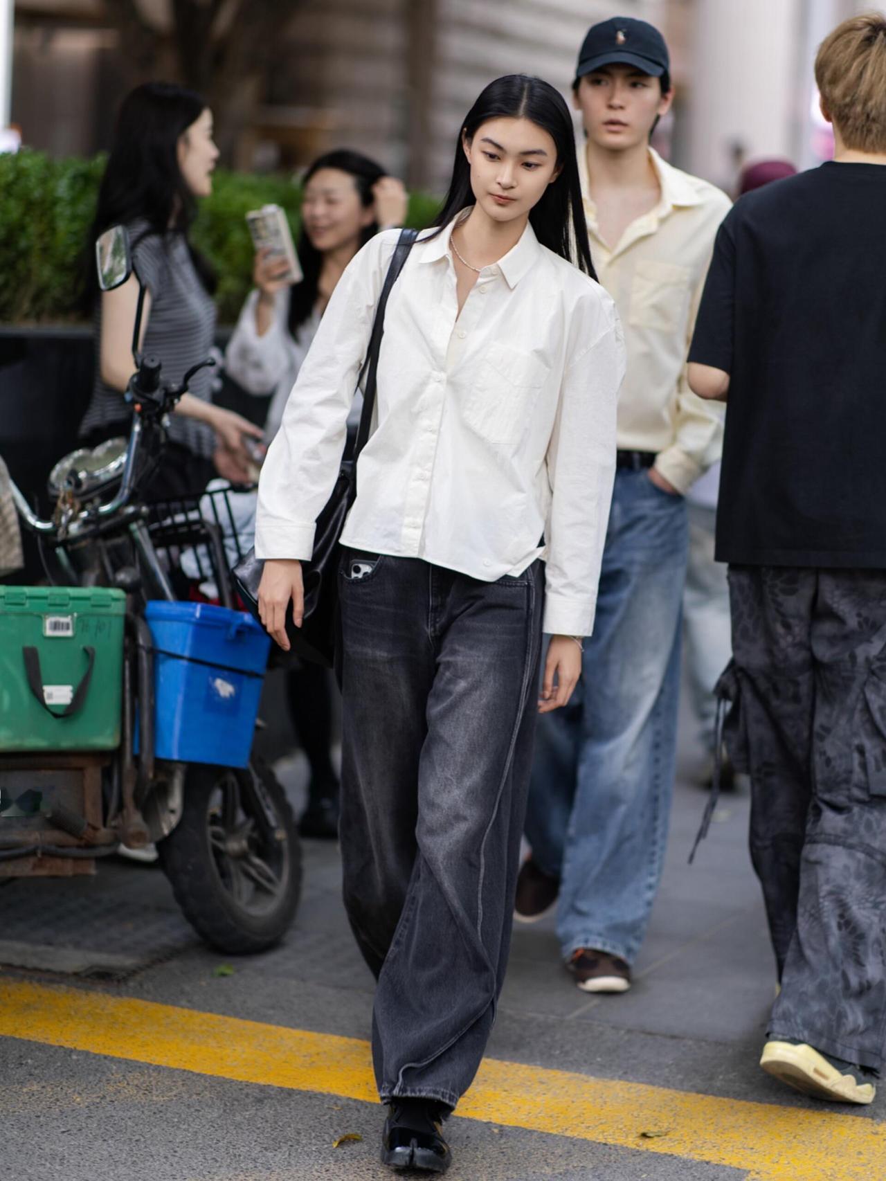 上海女生超会穿,这几组气质又好看! 宽松工装裤、垂感牛仔裤搭配简约针织、白衬衫或