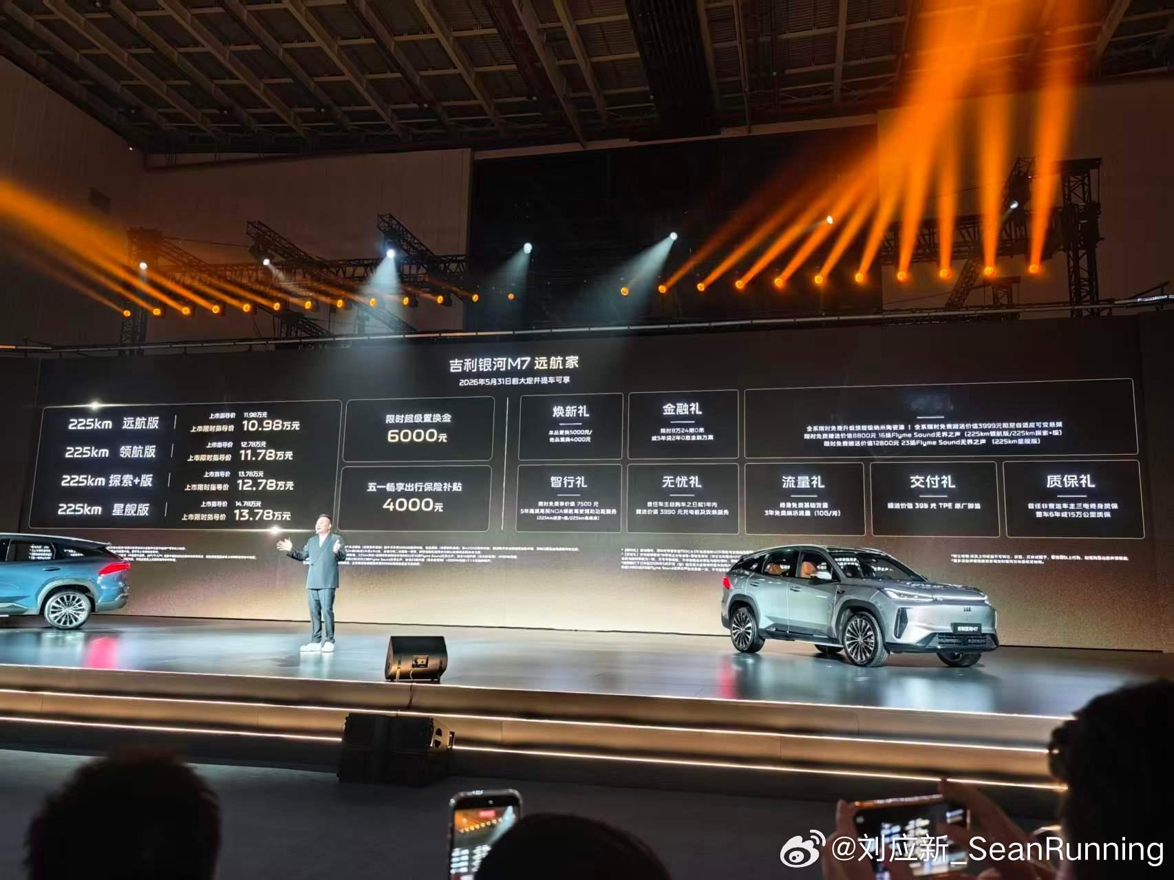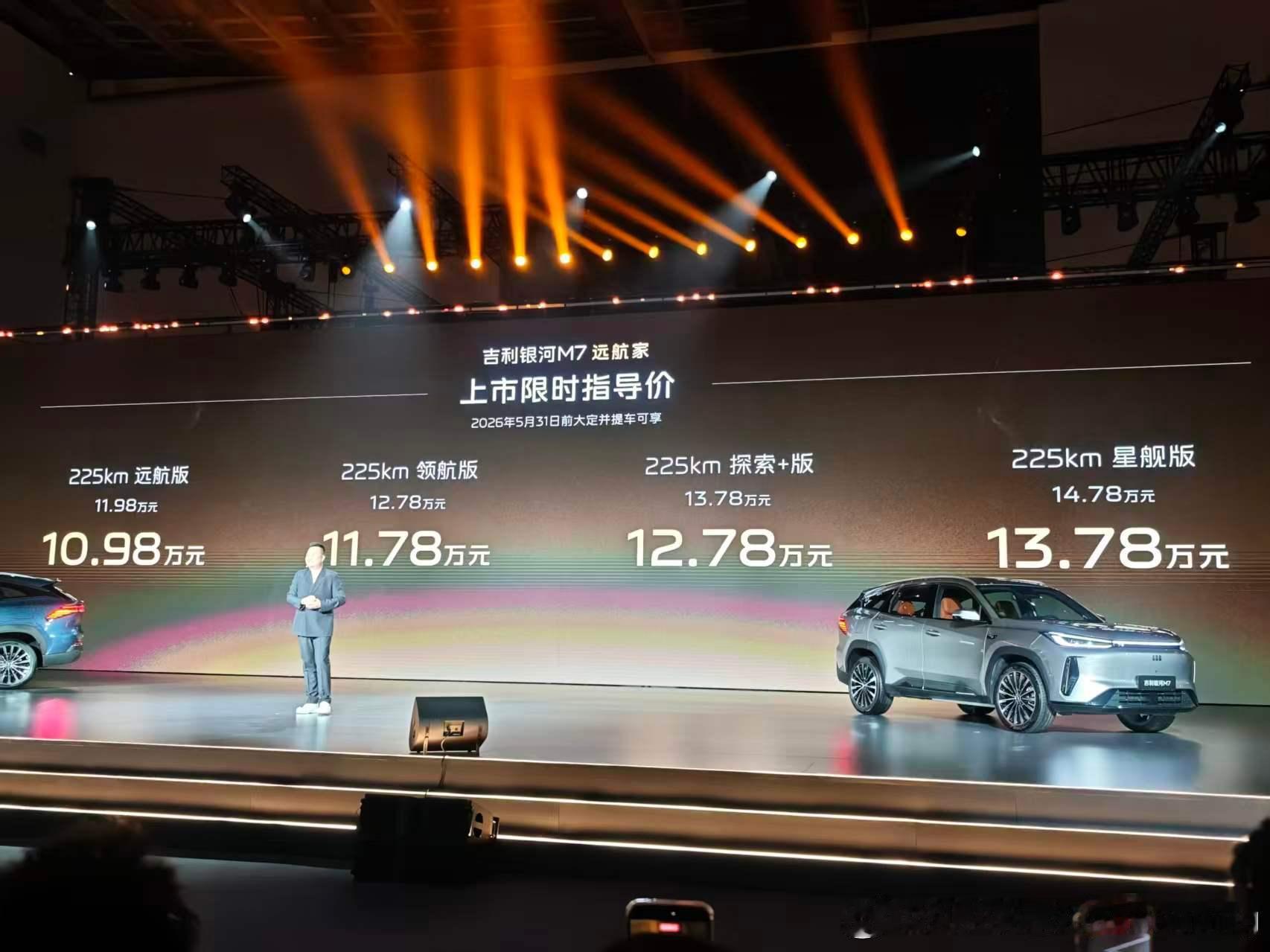 主流精品电混SUV引领者来了!吉利银河M7远航家今日正式上市,权益价仅需10.98万元起!新车搭载神盾金砖电池,全系标配CLTC纯电续航225km,远超同级!满油满电综合续航高达1730km,无论是城市通勤还是假期长途都能轻松拿捏。作为银河品牌M系列首款主流电混SUV,整车基于GEA Evo全球智能新能源旗舰架构打造。雷神AI电混2.0系统表现惊艳,热效率达到惊人的47.26%,馈电油耗低至3.35L/100km。吉利银河M7远航家10.98万起吉利银河M7远航家上市