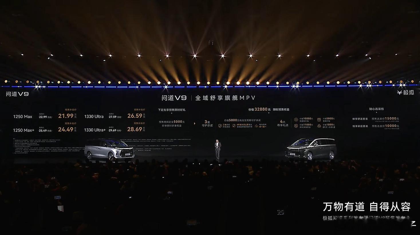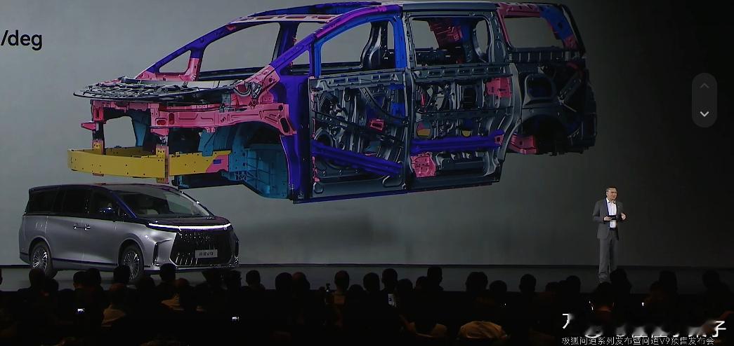 但多数人选MPV时,容易忽视车身防滚安全,车辆意外侧翻时,缺乏防护的车顶隐患极大。极狐问道V9直面家用安全痛点,率先配备内嵌式金属防滚架。整车高强钢占比达89.83%,车身扭转刚度出色,搭配一体式热成型门环与超大侧气帘,层层筑牢安全防线。