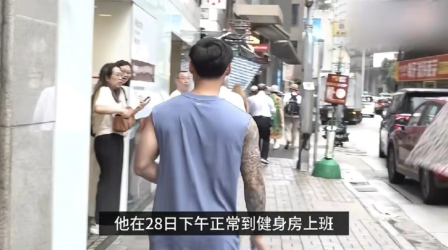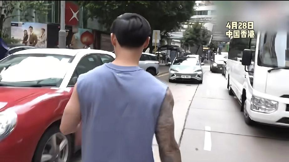 4月28日,蔡卓妍老公林俊贤下午正常去健身房上班被拍到,原来他是花臂男,没戴钻戒,远不如蔡卓妍有钱。